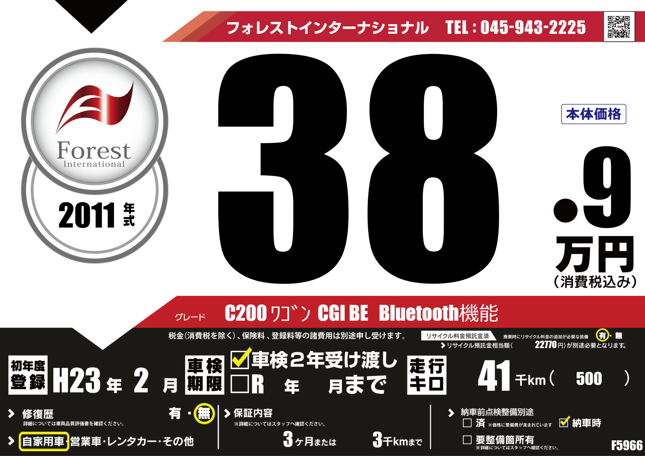 | 初年度登録 | H23年2月 | ||
