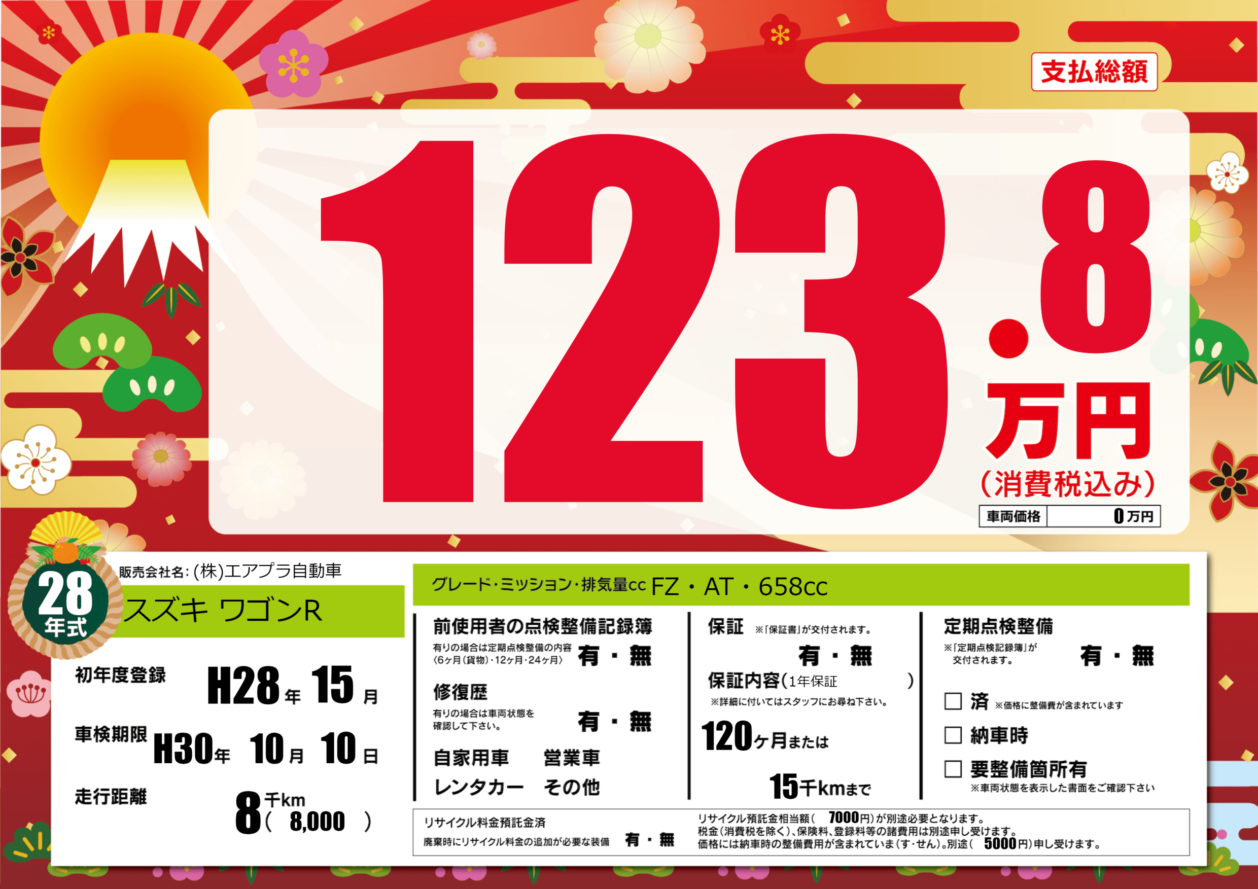 | 車名 | スズキ ワゴンR | グレード ミッション 排気量 |