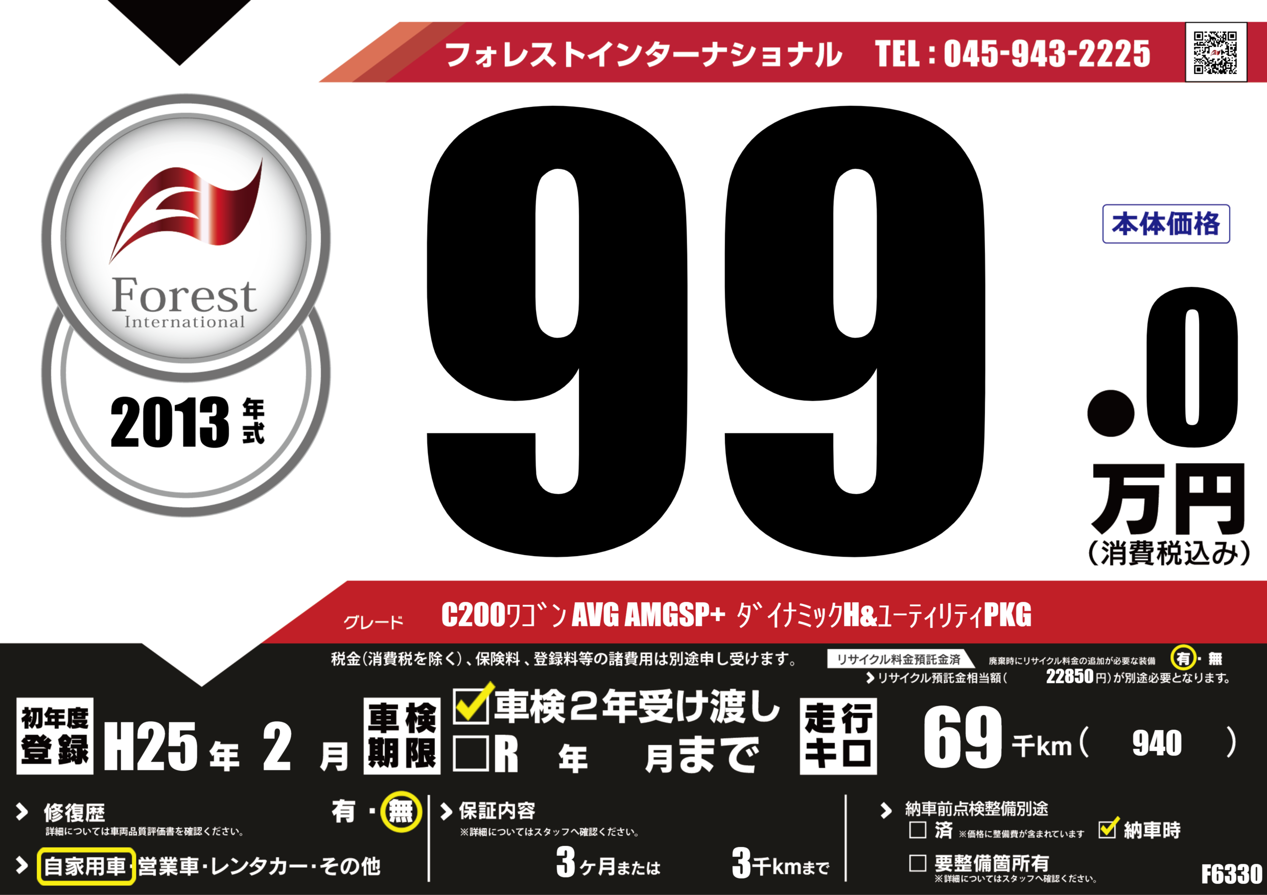 C200ワゴン AVG AMGSP+ ダイナミックH&ユーティリティPKG |