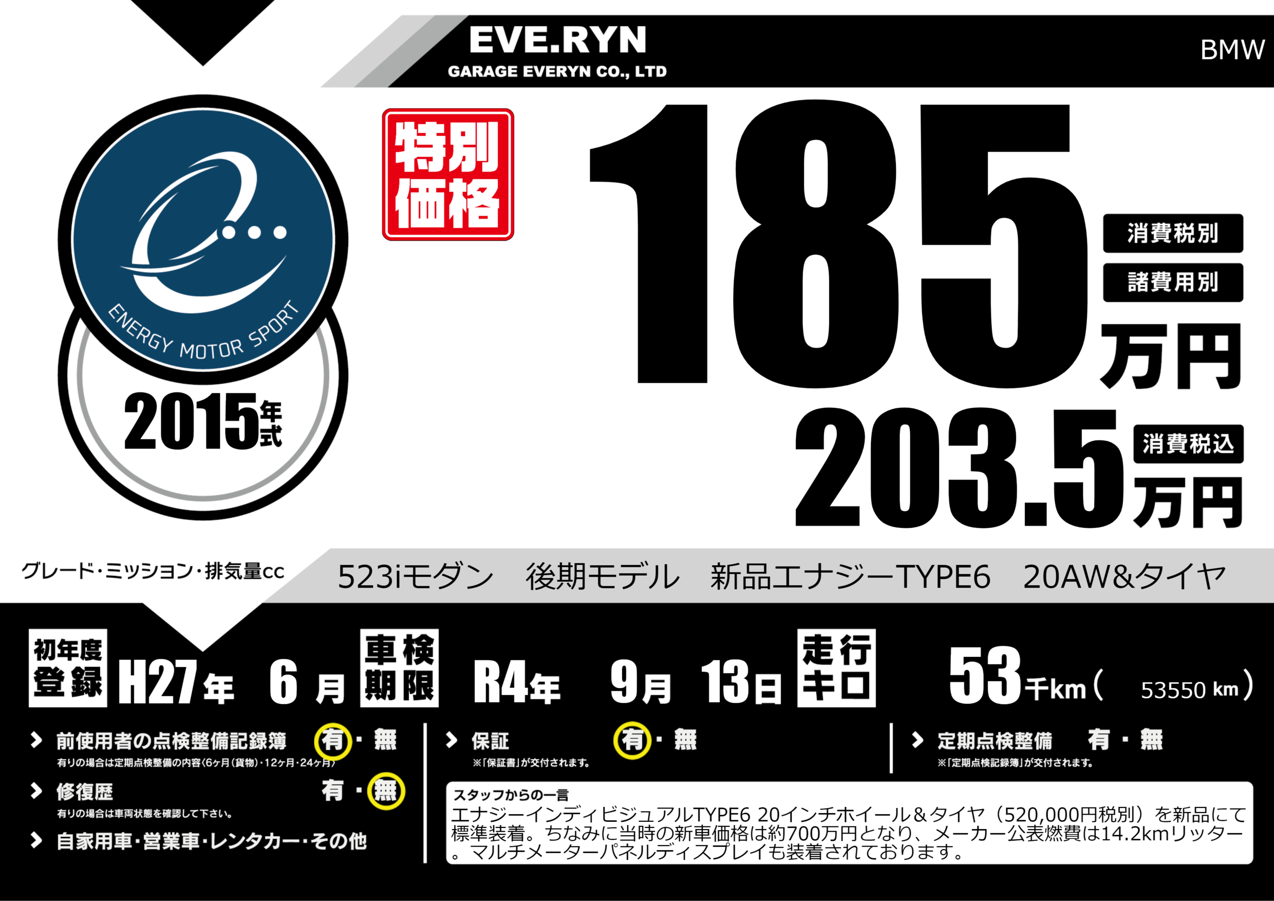 523iモダン 後期モデル 新品エナジーTYPE6 20AW&タイヤ |