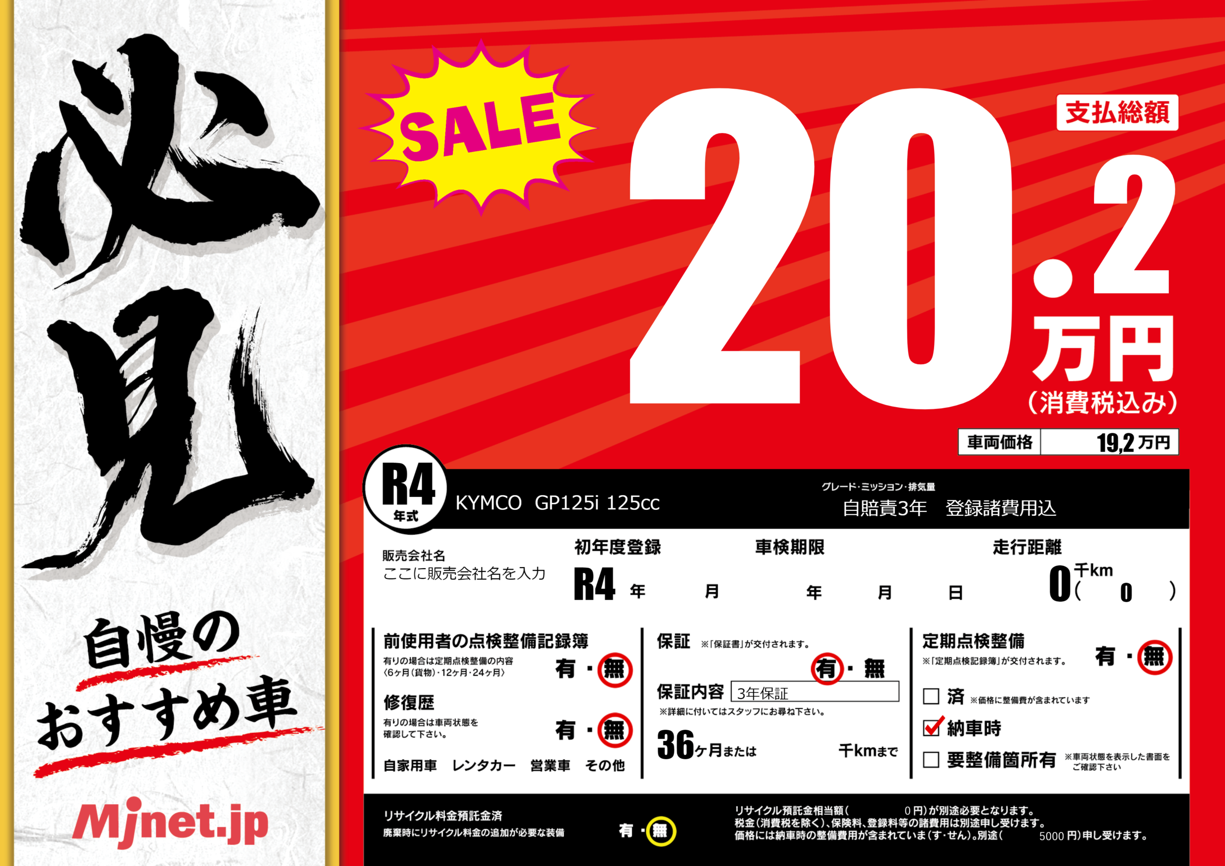 | 車名 | KYMCO GP125i 125cc | グレード ミッション 排気量 |
