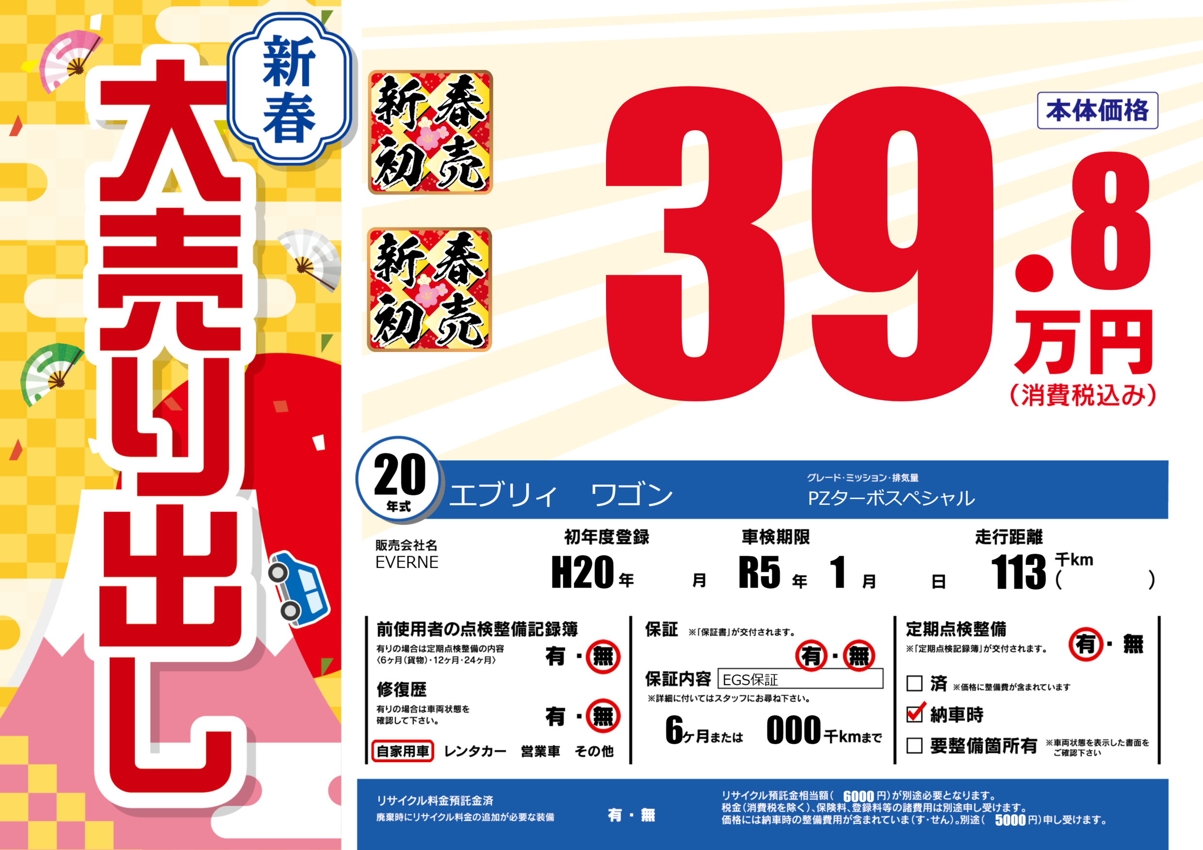 保証なし 保証内容(EGS保証) 6ヶ月または(000)千kmまで |