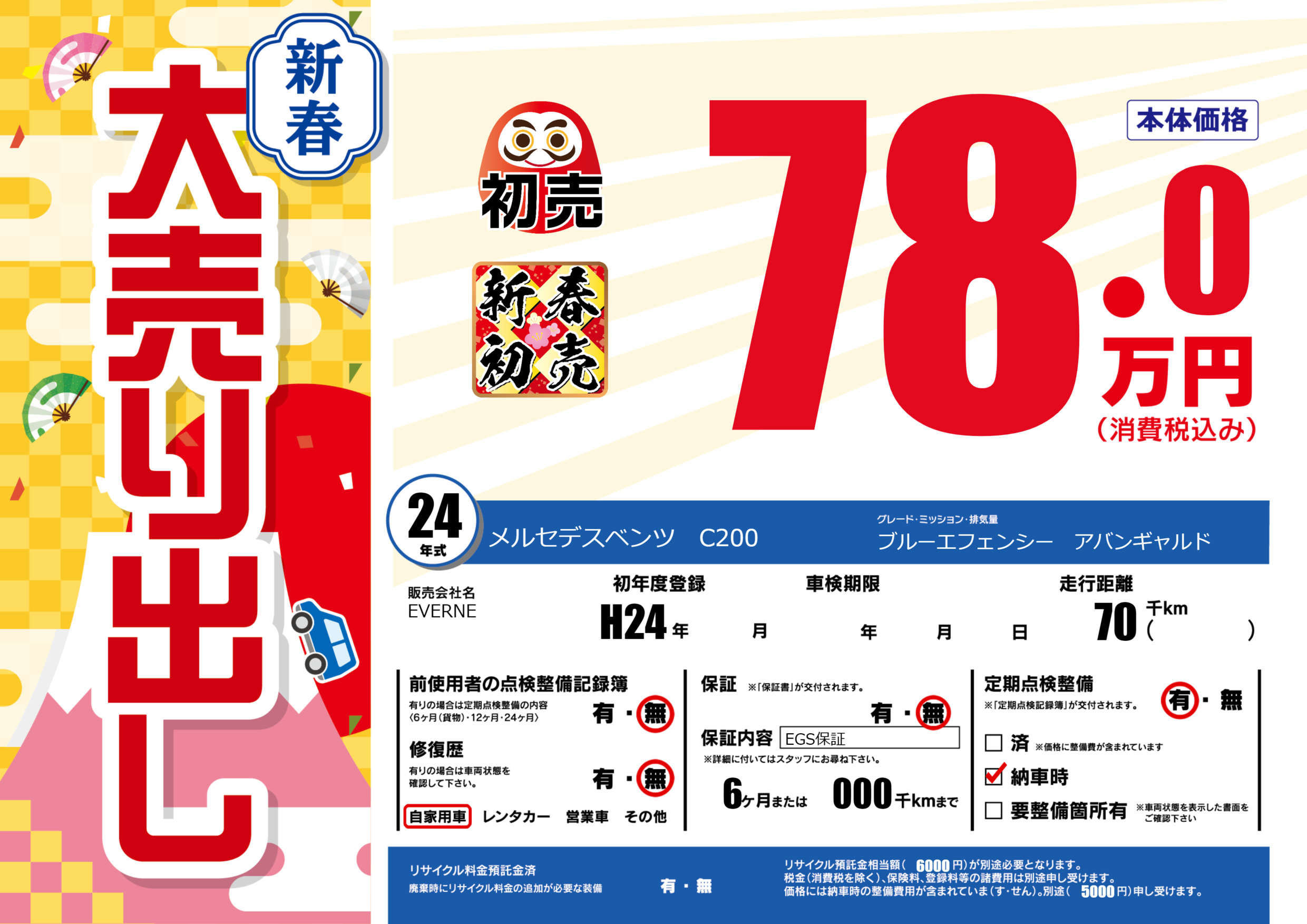 | 車名 | メルセデスベンツ C200 | グレード ミッション 排気量 |