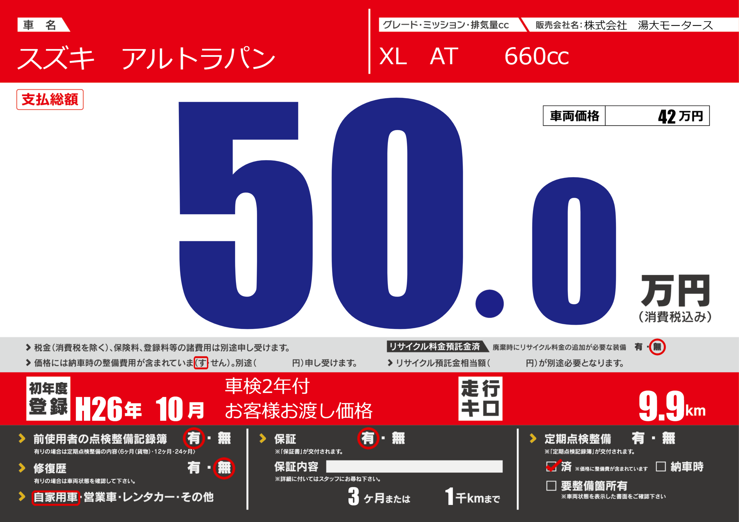 | 定期点検整備 | 定期点検整備済み | ||