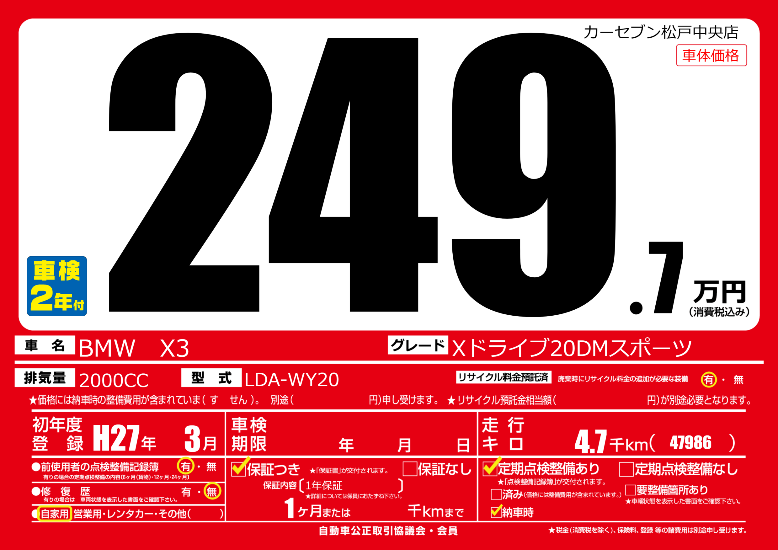 | 初年度登録 | H27年3月 | ||