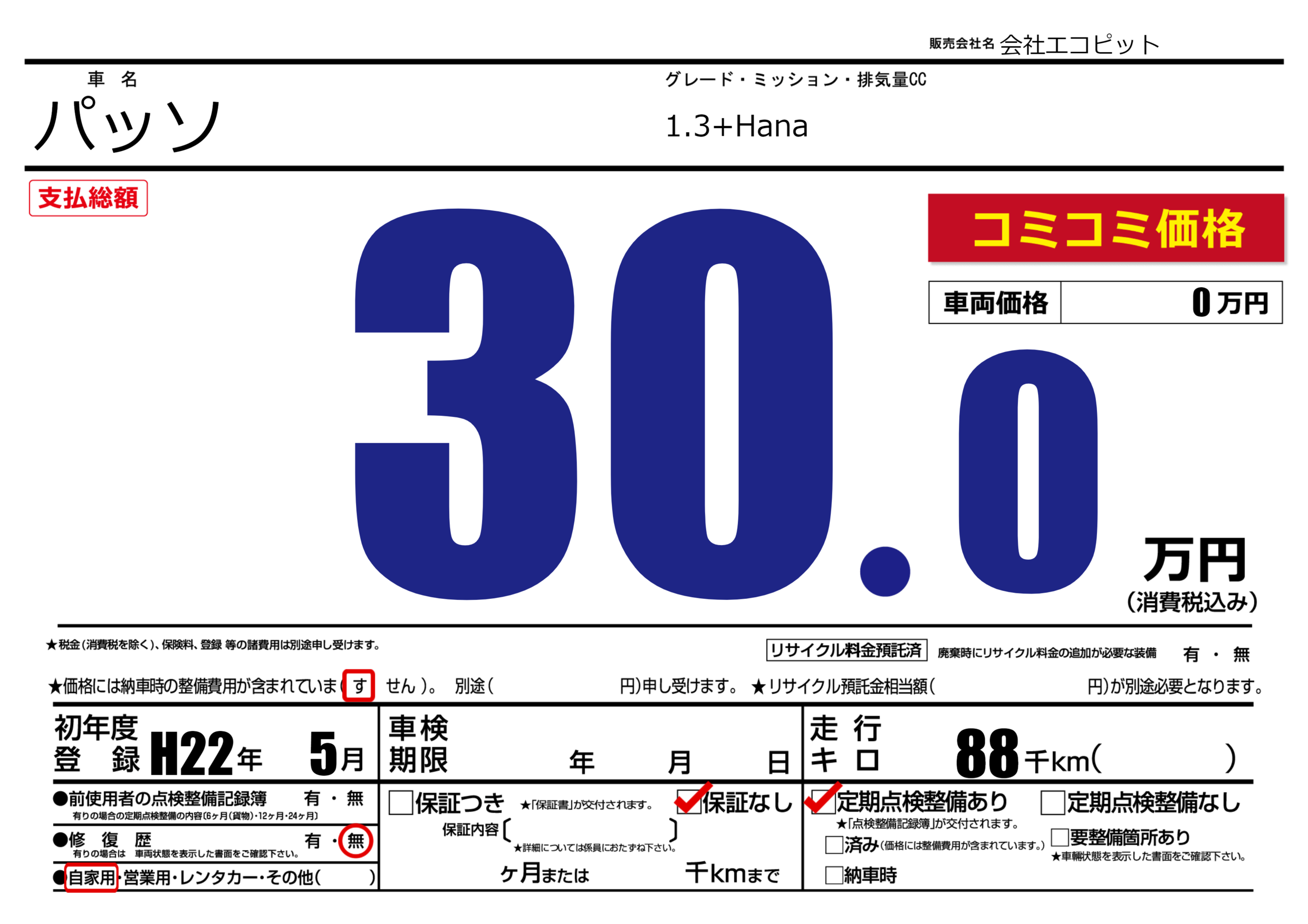 | 定期点検整備 | 定期点検整備あり | ||