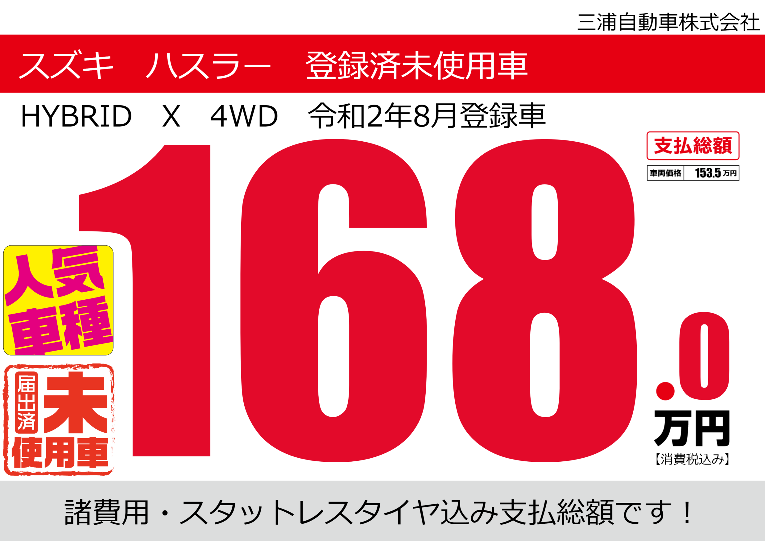 | 車名 | スズキ ハスラー 登録済未使用車 | グレード ミッション 排気量 |