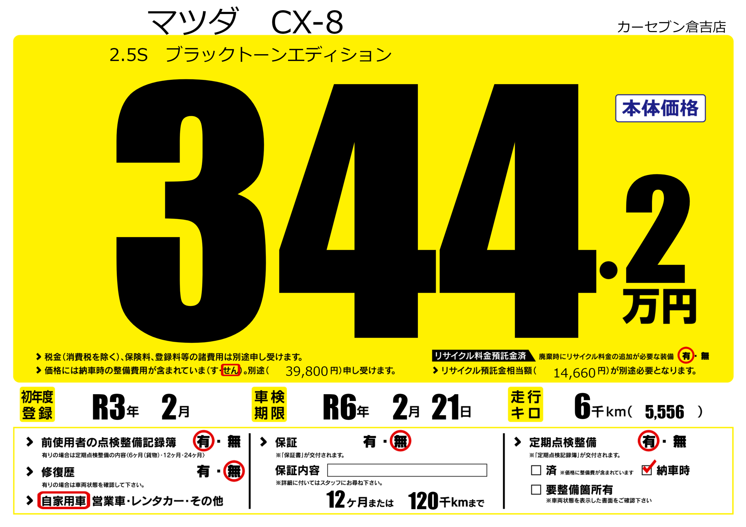 | 車名 | マツダ CX-8 | グレード ミッション 排気量 |