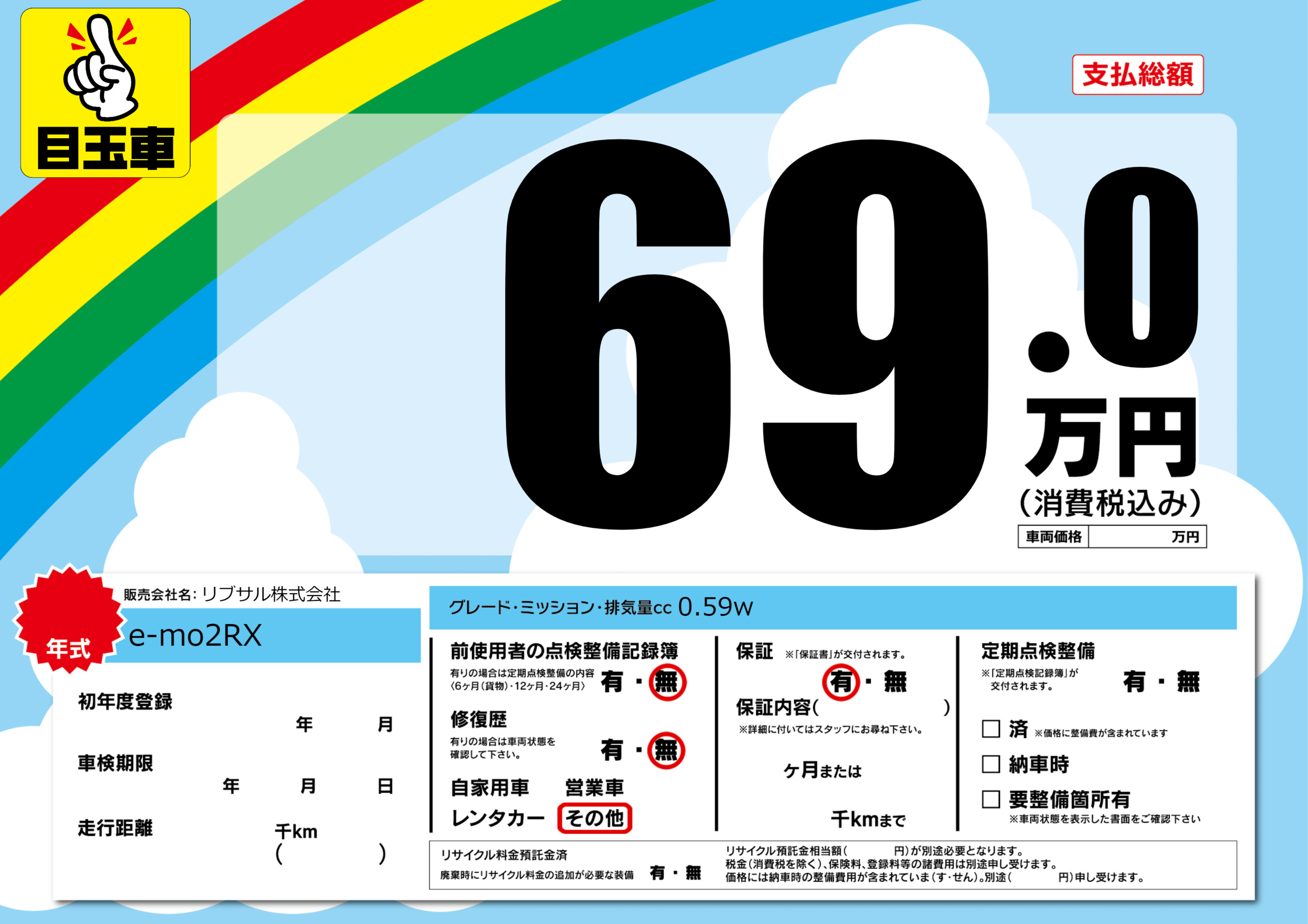 | 車名 | e-mo2RX | グレード ミッション 排気量 |