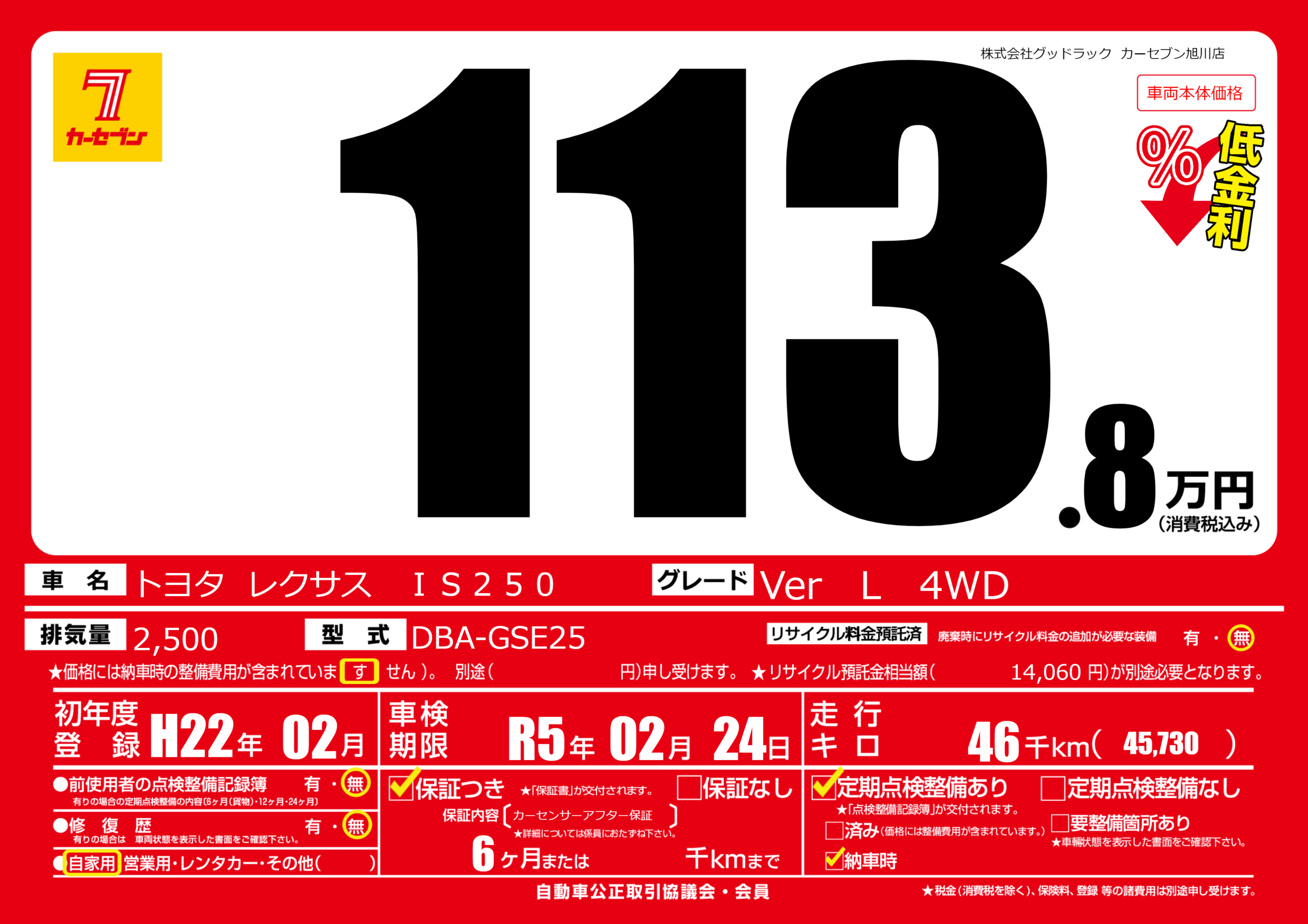 | 走行キロ | 4.6万km | ||