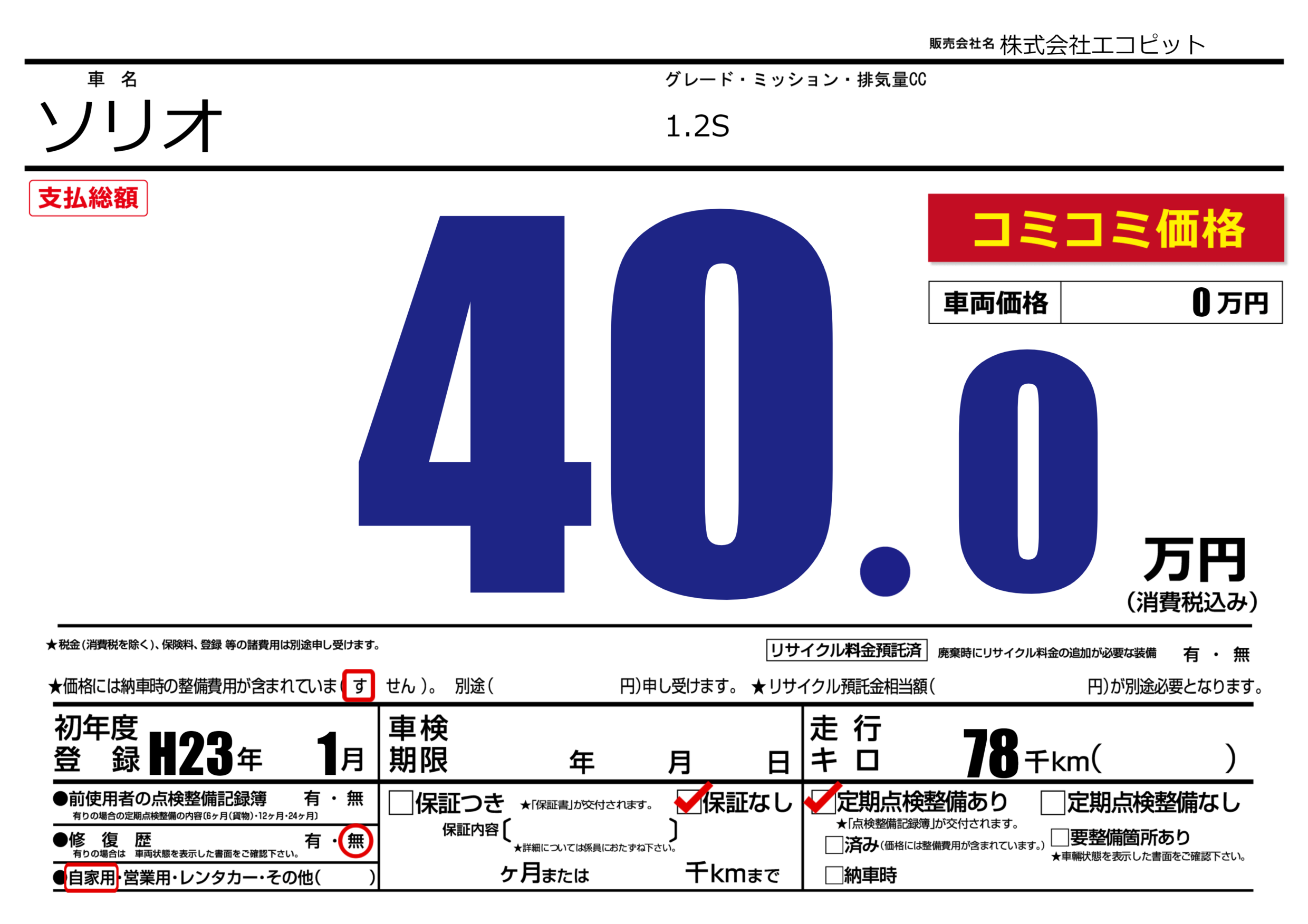 | 定期点検整備 | 定期点検整備あり | ||