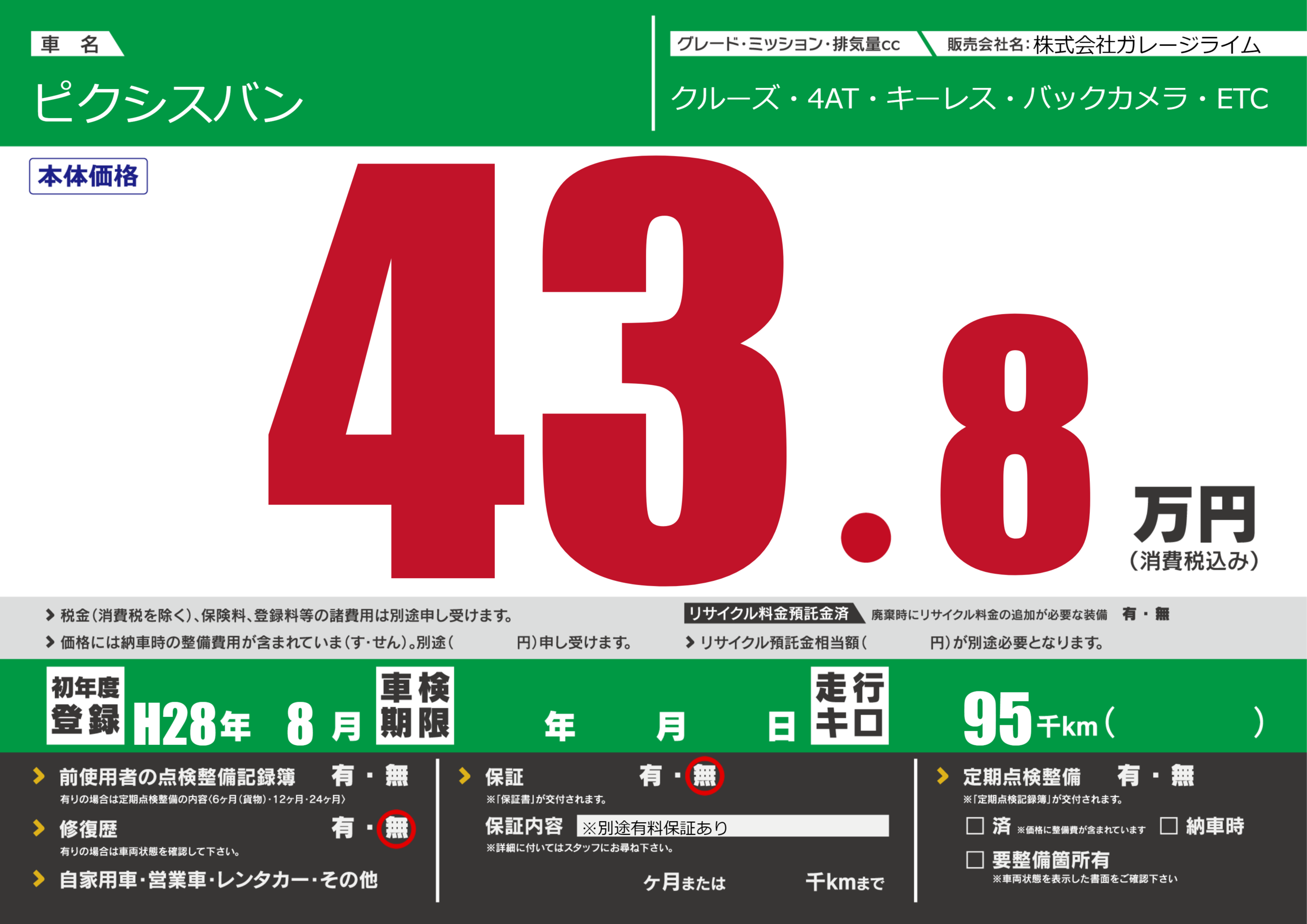 | 車検制限 | - 年 - 月 - 日 | ||