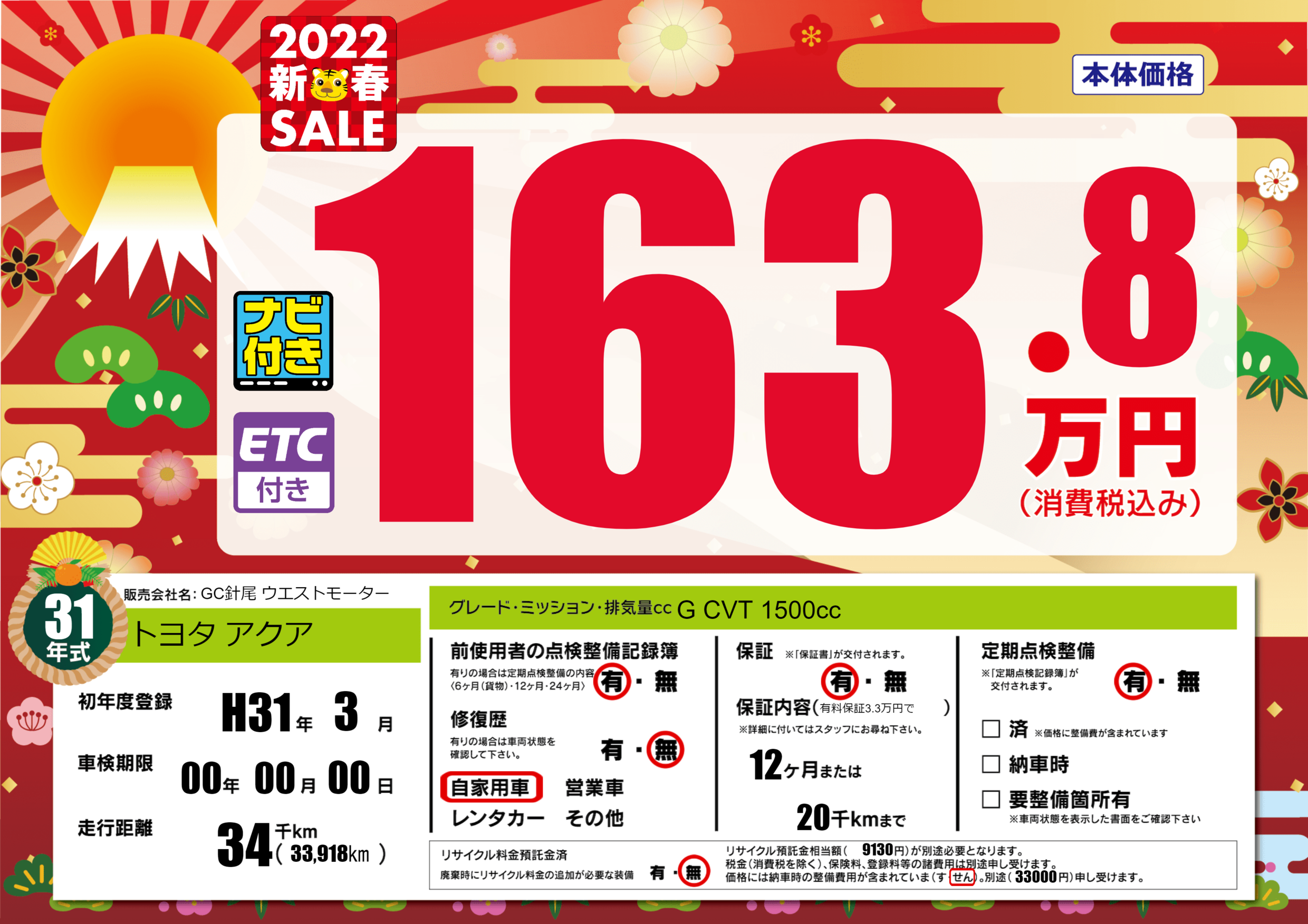 保証付き 保証内容(有料保証3.3万円で) 12ヶ月または20千km |