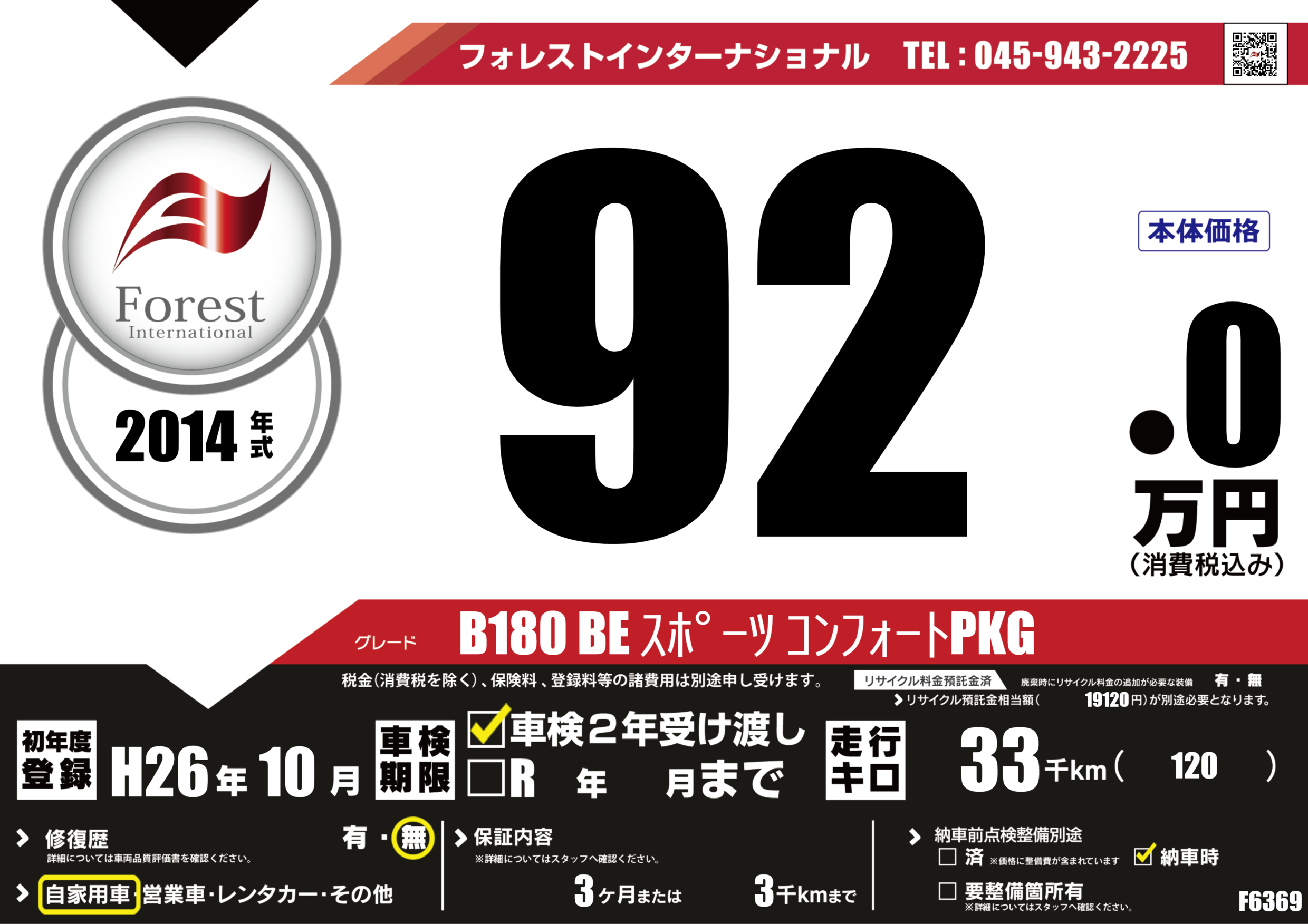 | 走行キロ | 3.3万km | 初年度登録 | H26年10月 |