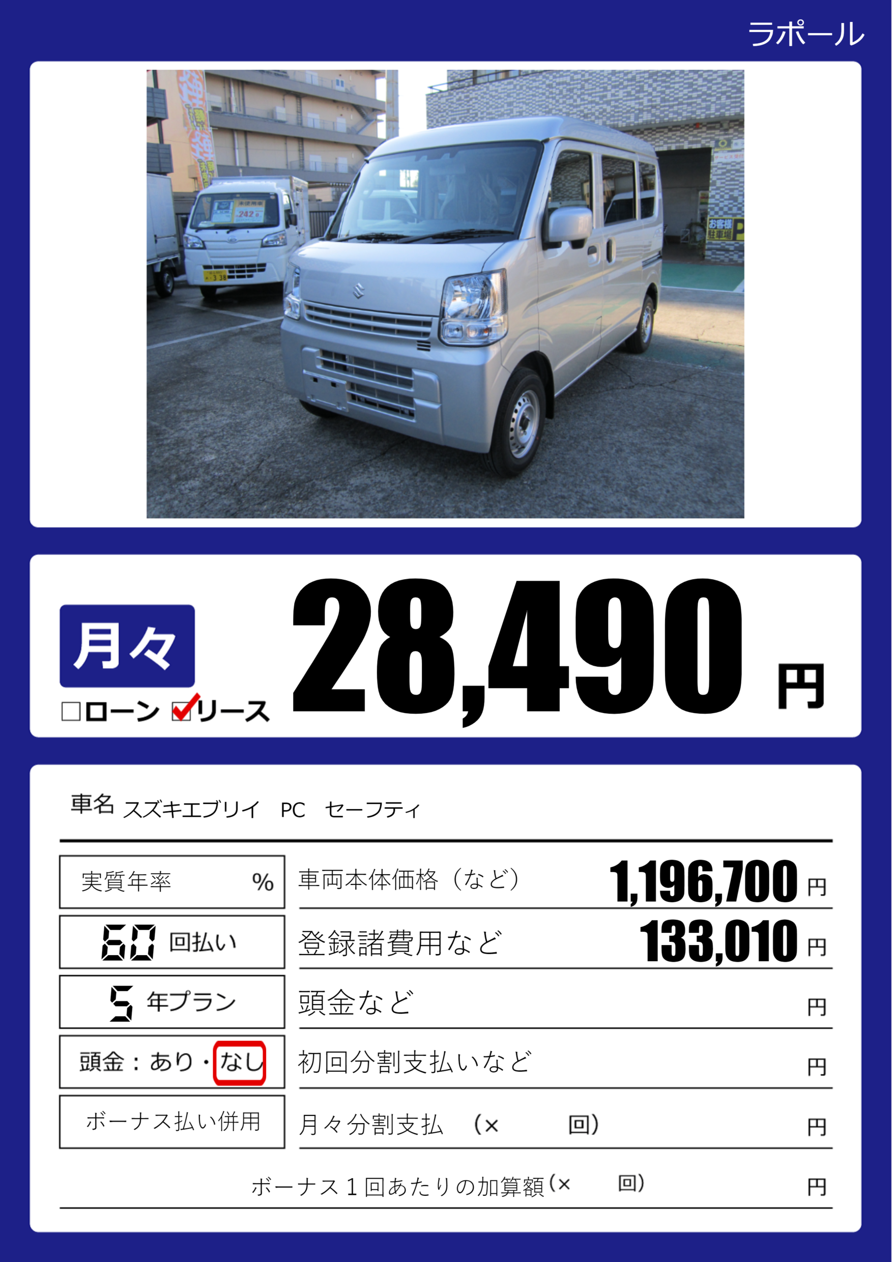 | 車名 | スズキエブリイ PC セーフティ | グレード ミッション 排気量 |