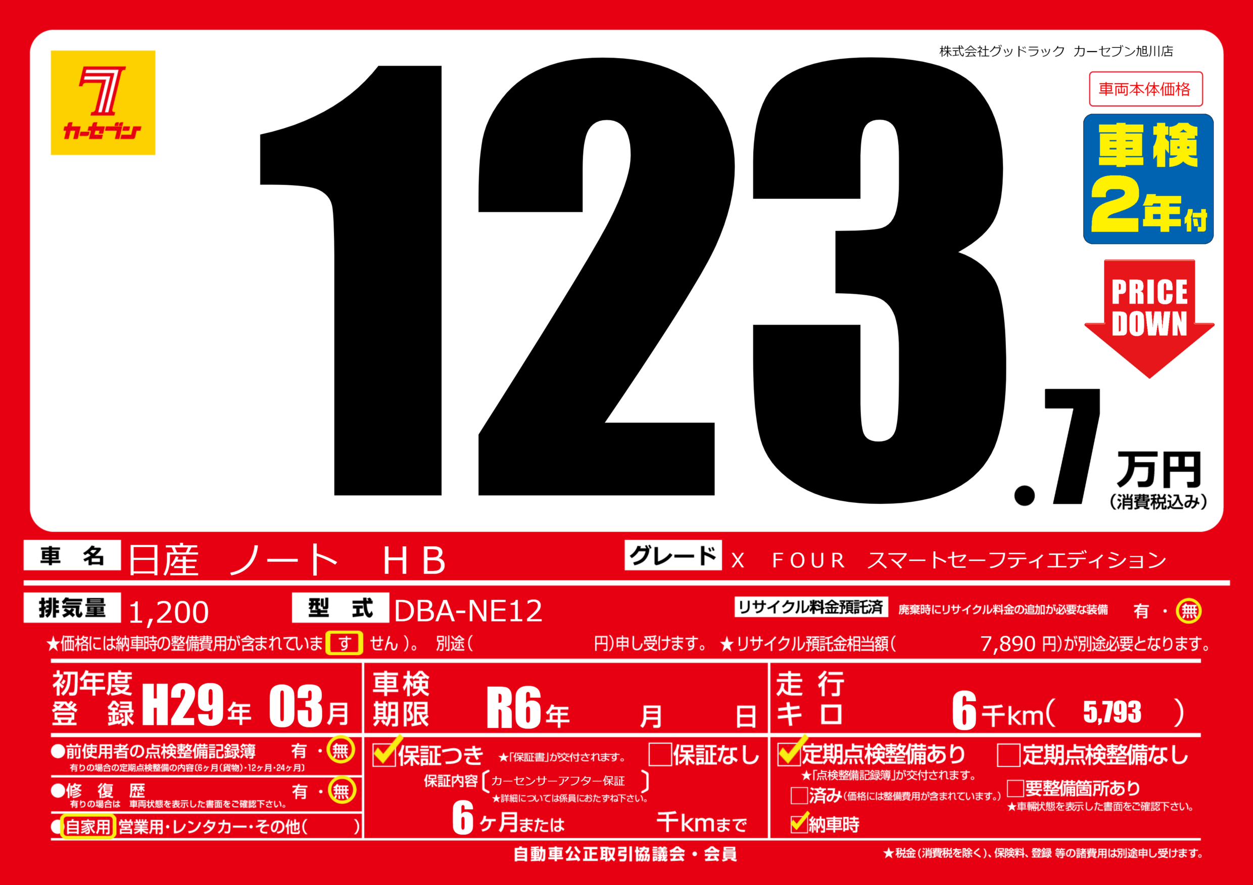 | 車名 | 日産 ノート HB | グレード ミッション 排気量 |