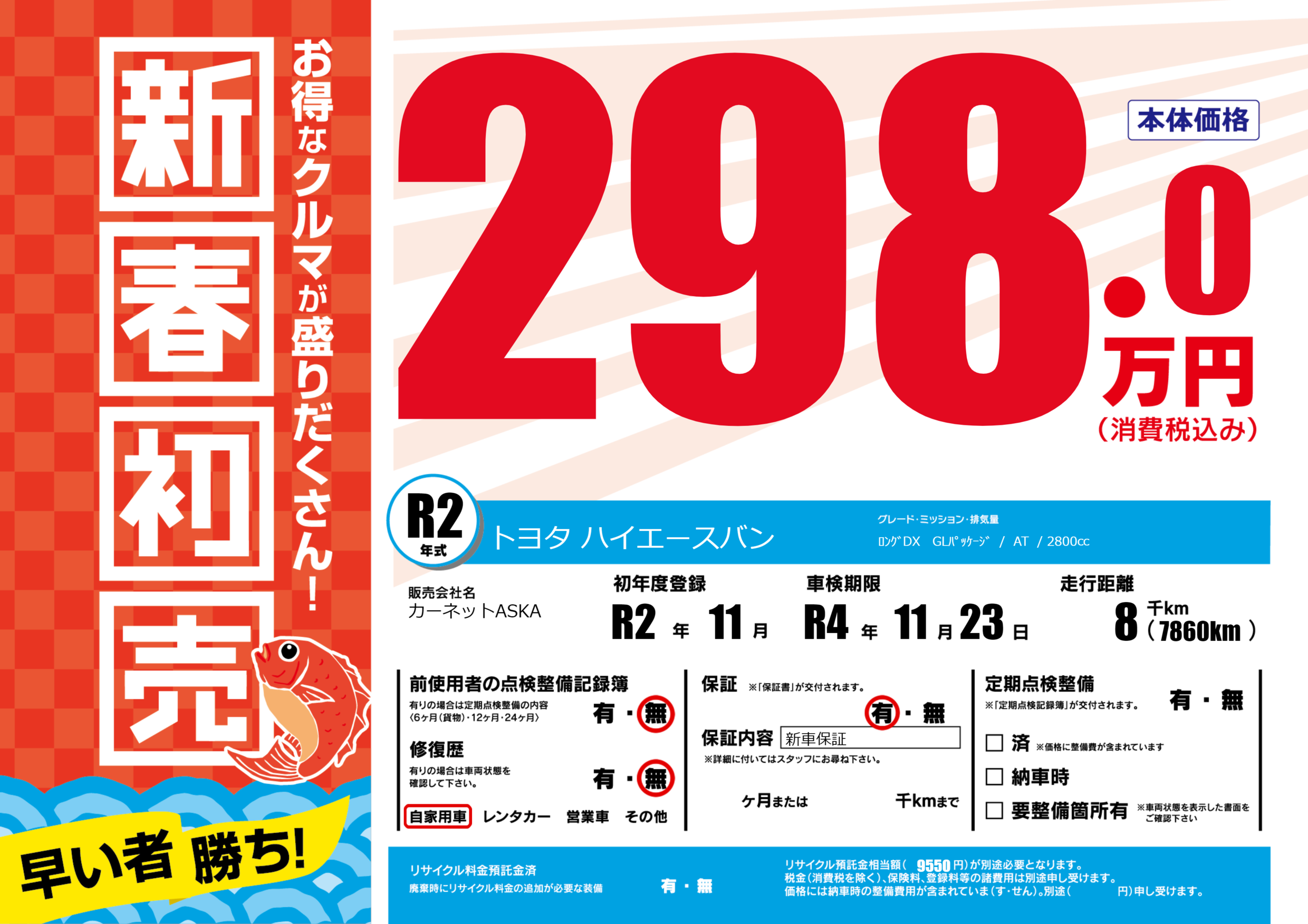 | 車名 | トヨタ ハイエースバン | グレード ミッション 排気量 |