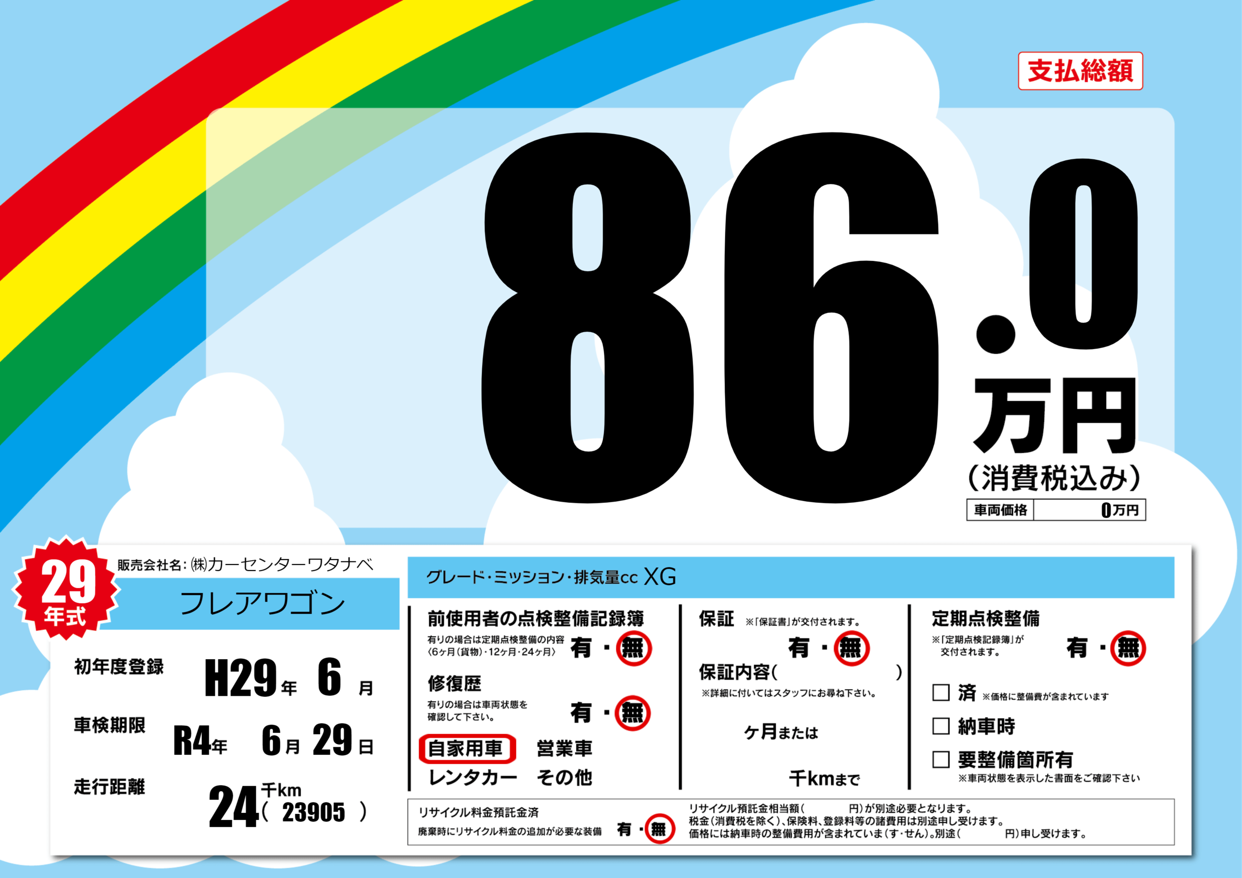 | 車名 | フレアワゴン | グレード ミッション 排気量 |