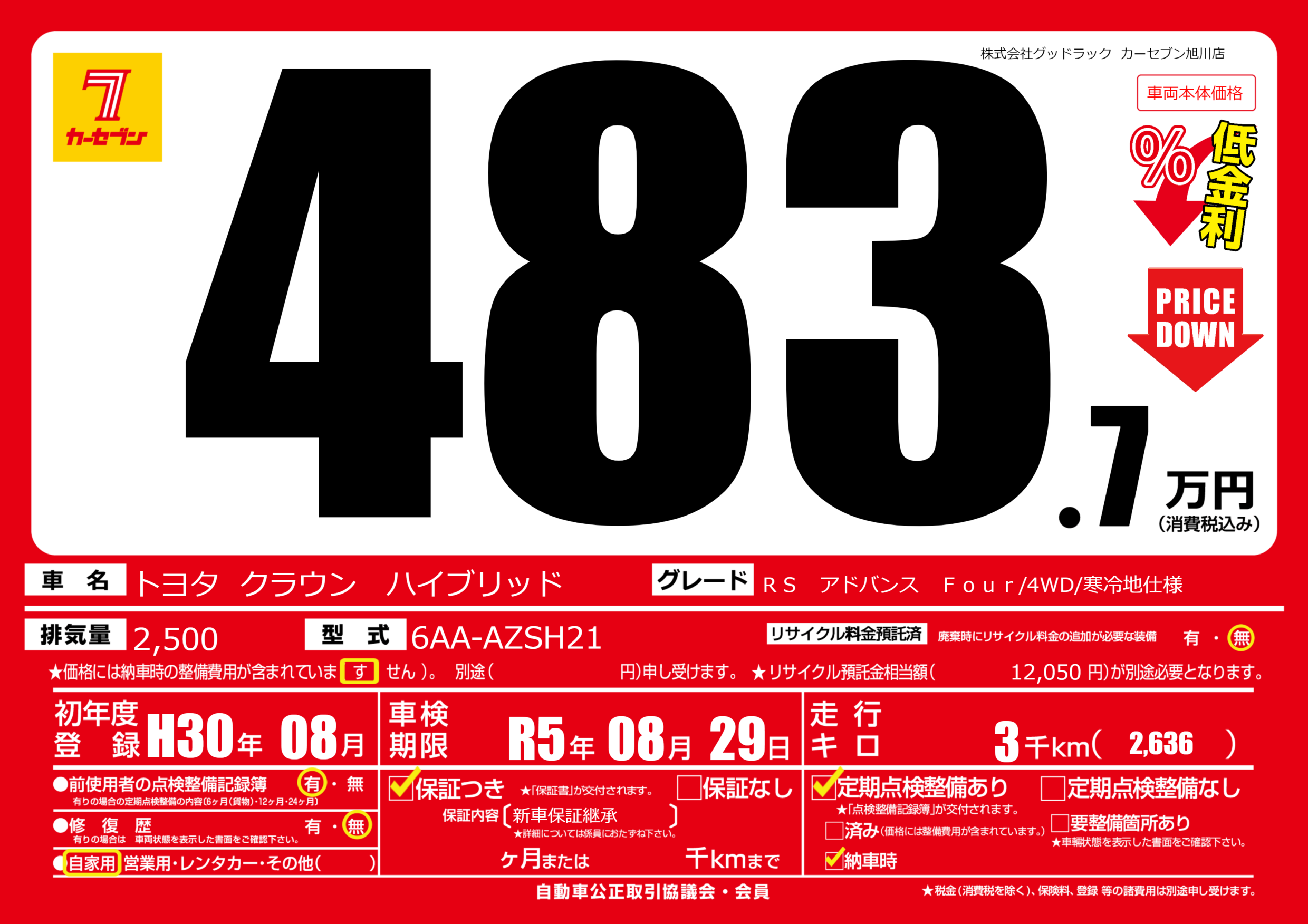 | 車名 | トヨタ クラウン ハイブリッド | グレード ミッション 排気量 |