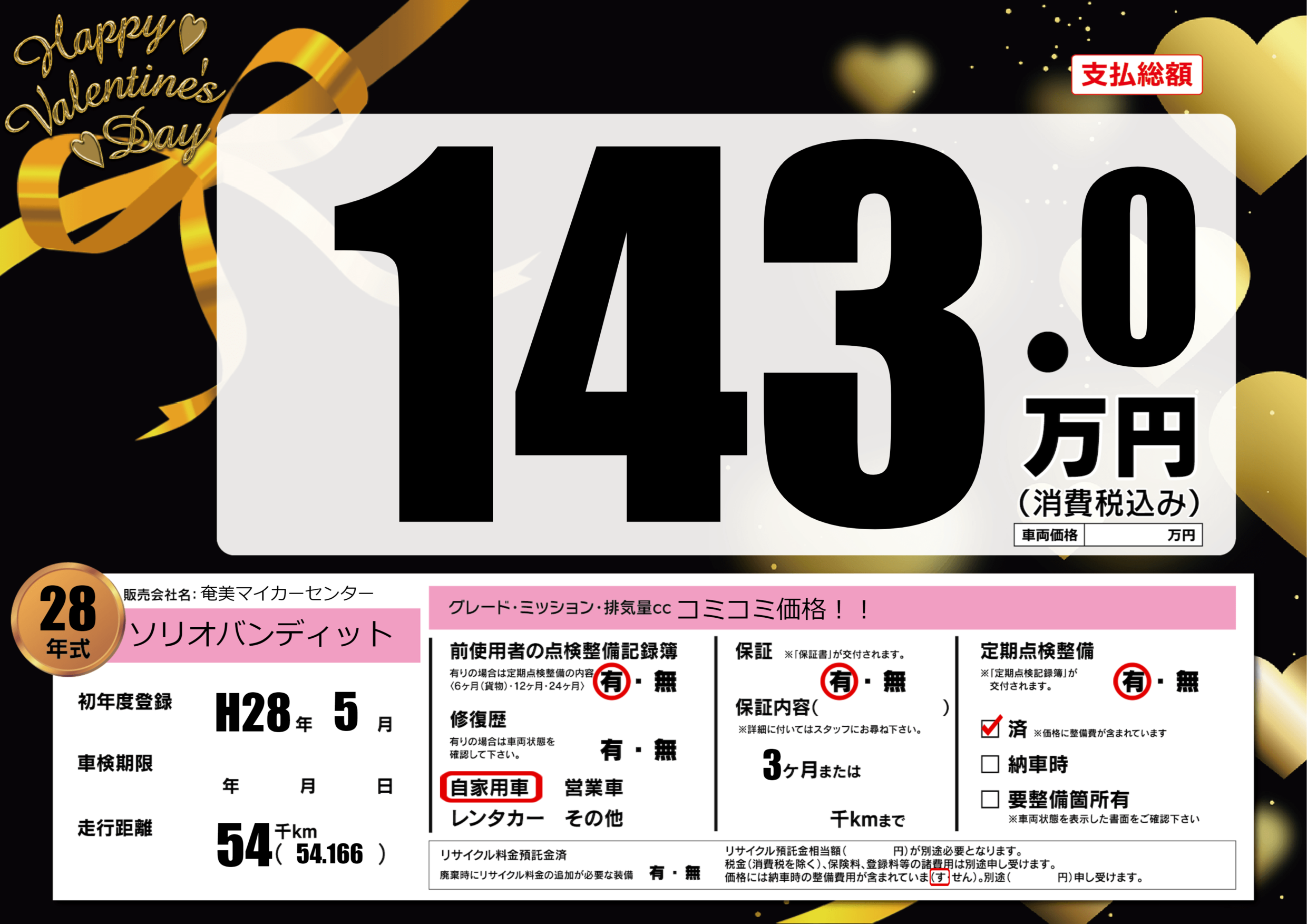 | 走行キロ | 5.4万km | 初年度登録 | H28年5月 |