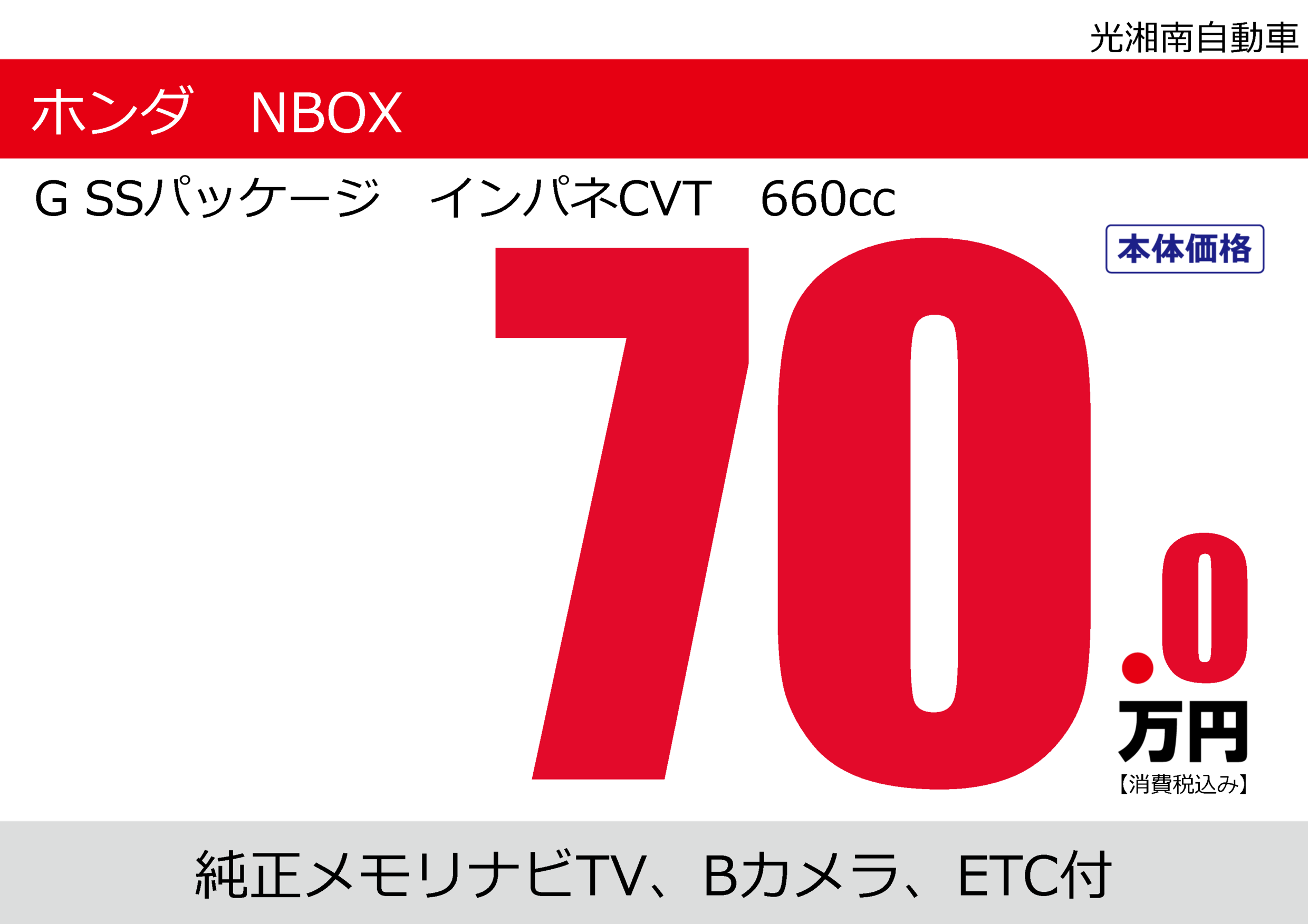 | 車名 | ホンダ NBOX | グレード ミッション 排気量 |