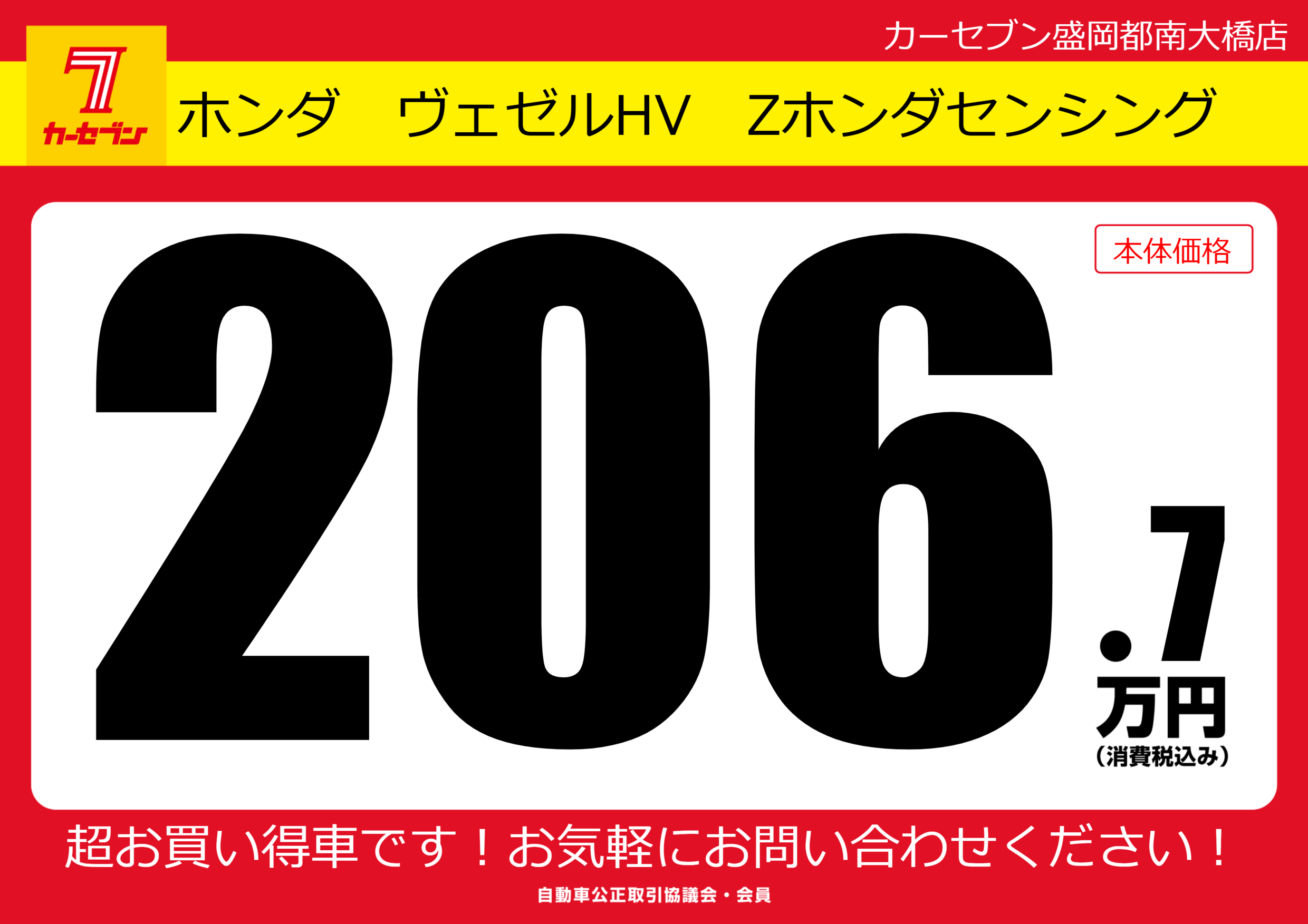 | 車名 | ホンダ ヴェゼルHV Zホンダセンシング | グレード ミッション 排気量 |