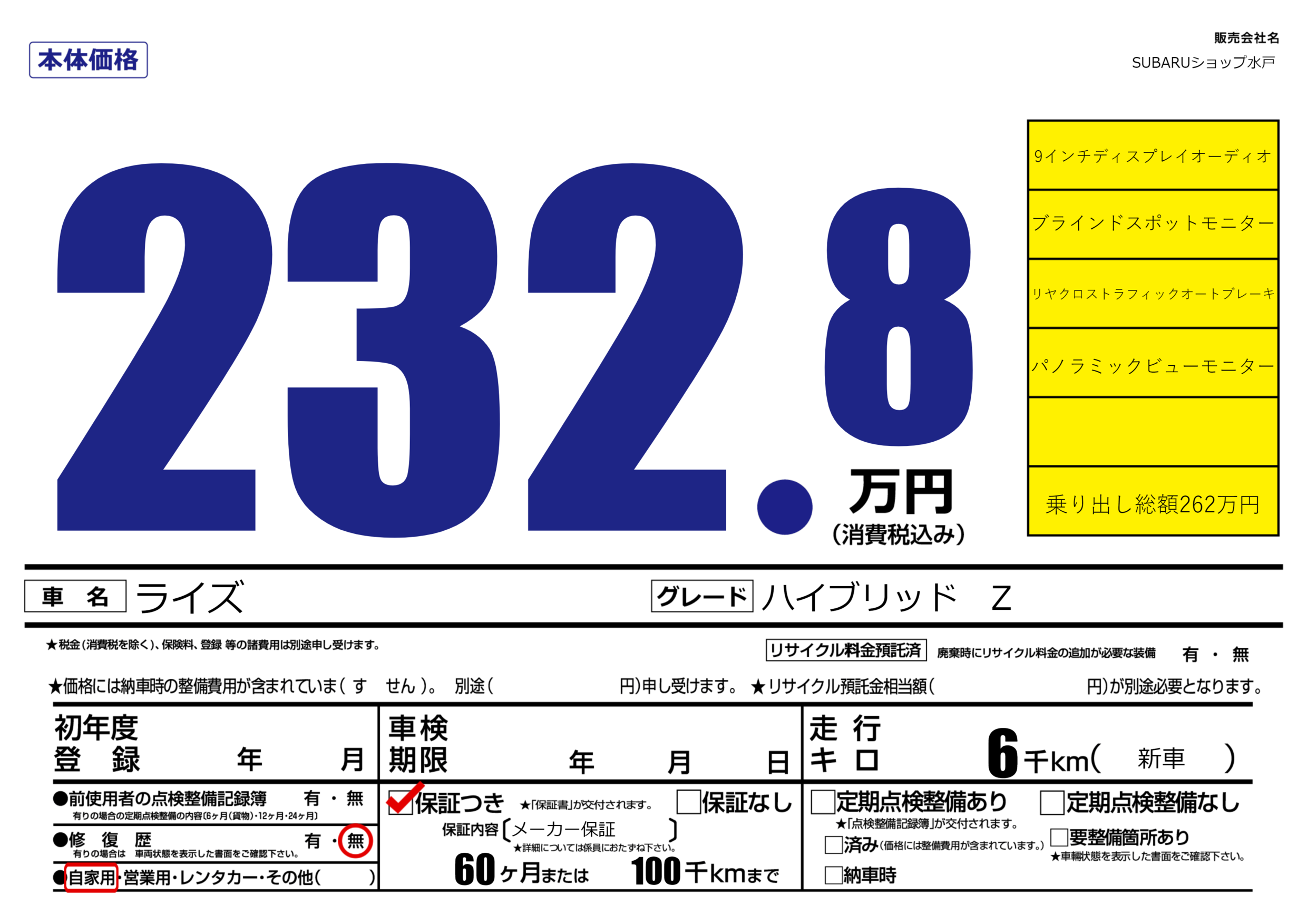 | 車名 | ライズ | グレード ミッション 排気量 |