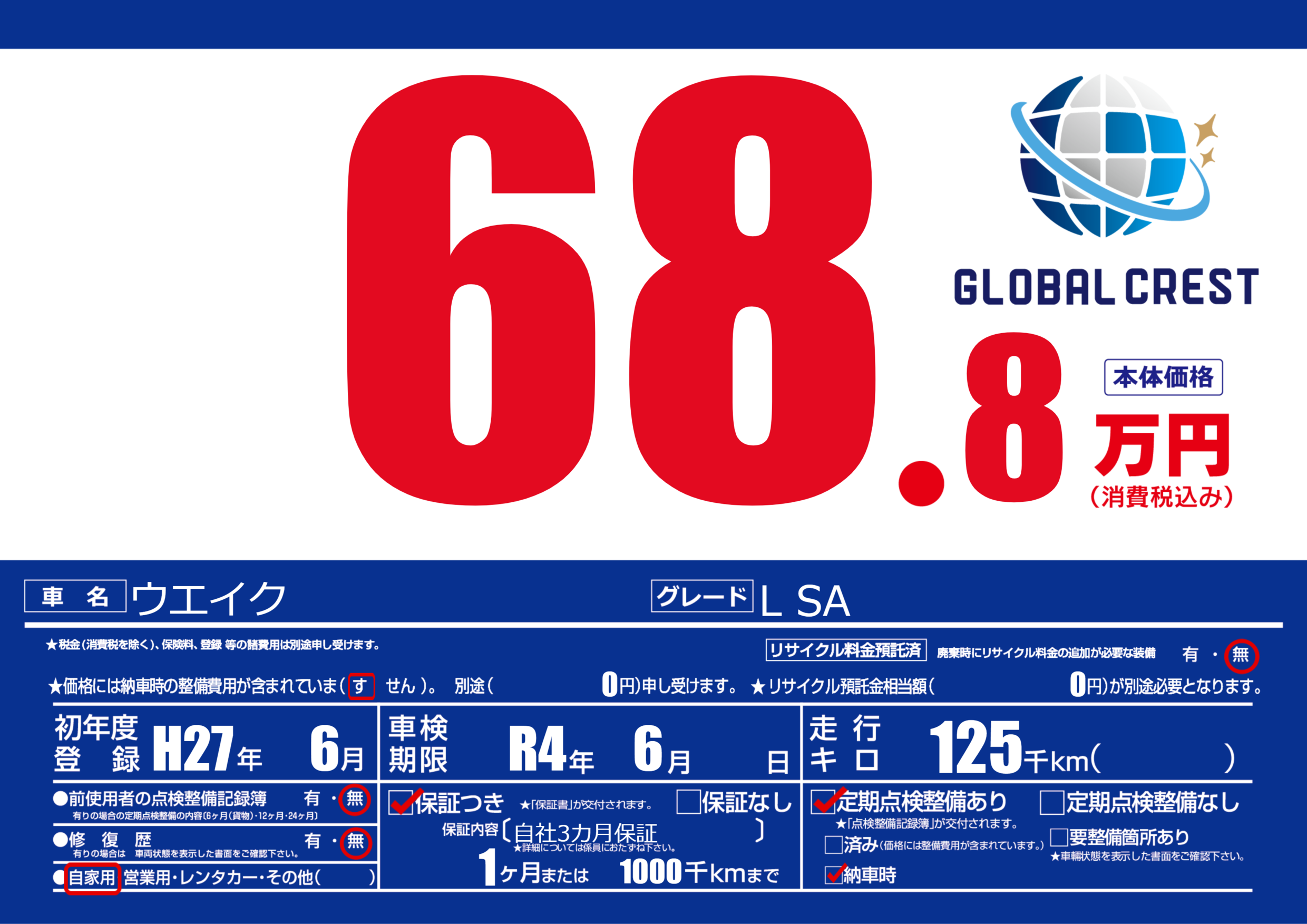 | 車名 | ウエイク | グレード ミッション 排気量 |