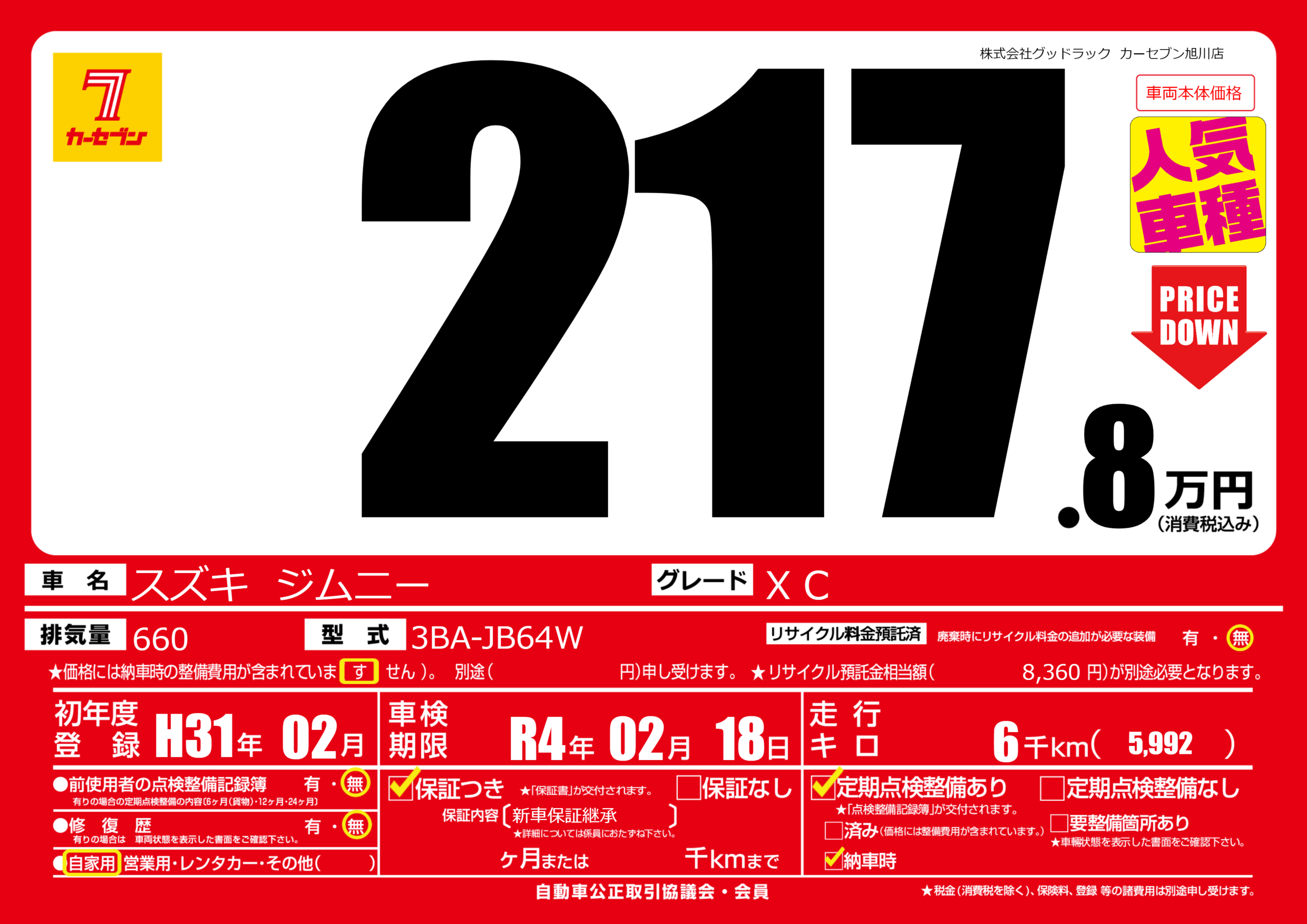 | 車検制限 | R4年 02月 18日 | ||