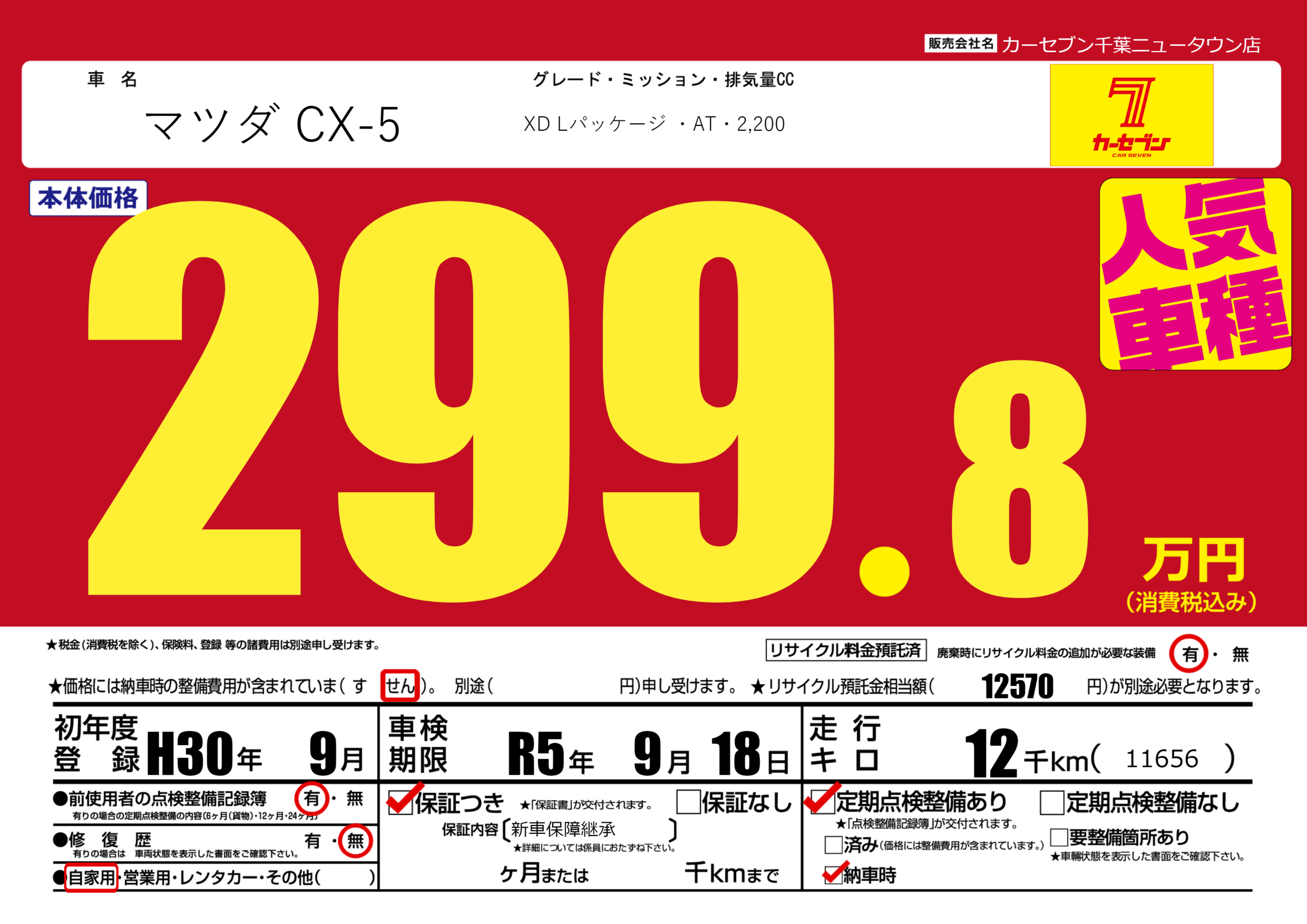 | 車名 | マツダ CX-5 | グレード ミッション 排気量 |