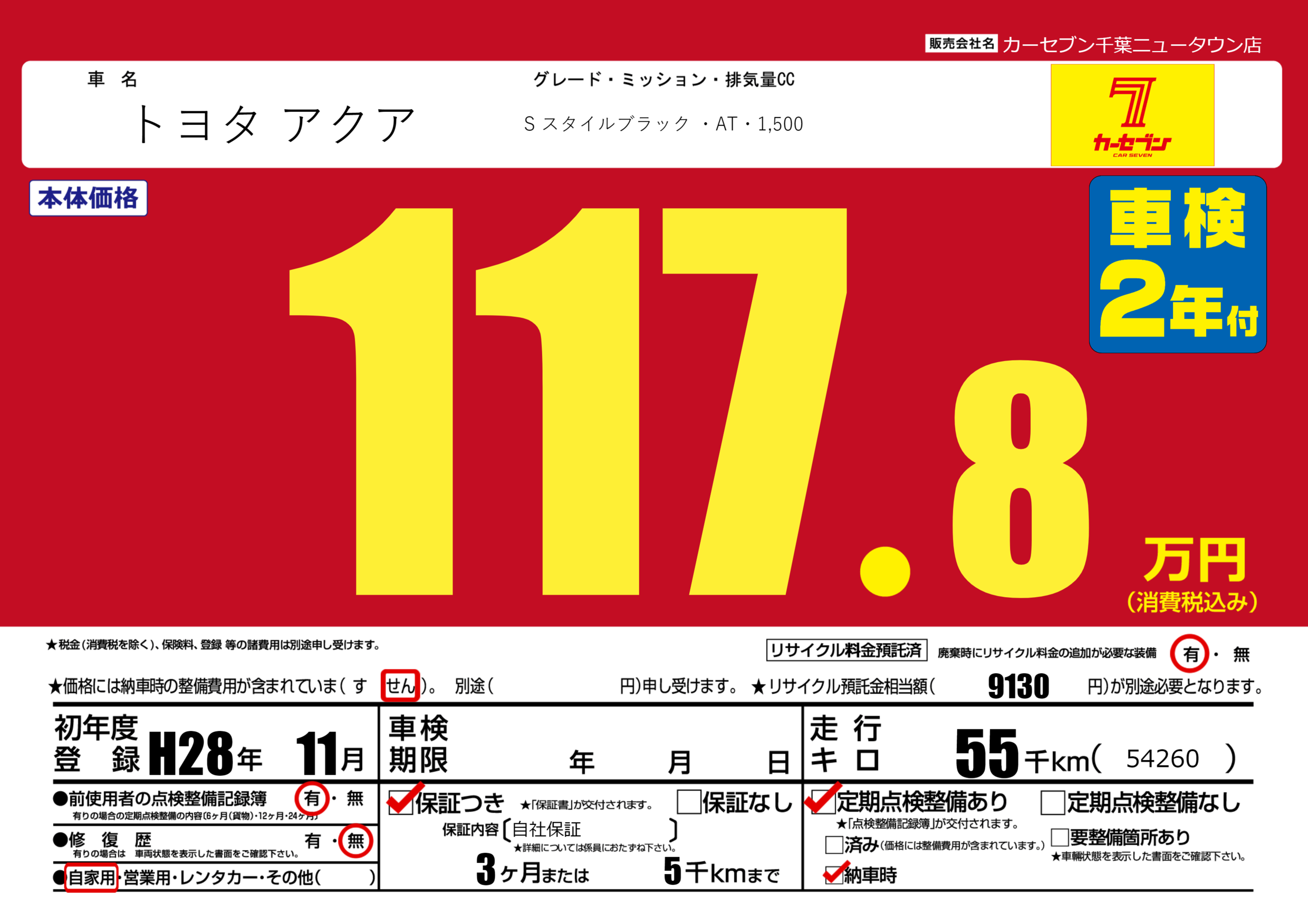 保証付き 保証内容(自社保証) 3ヶ月または(5)千kmまで |