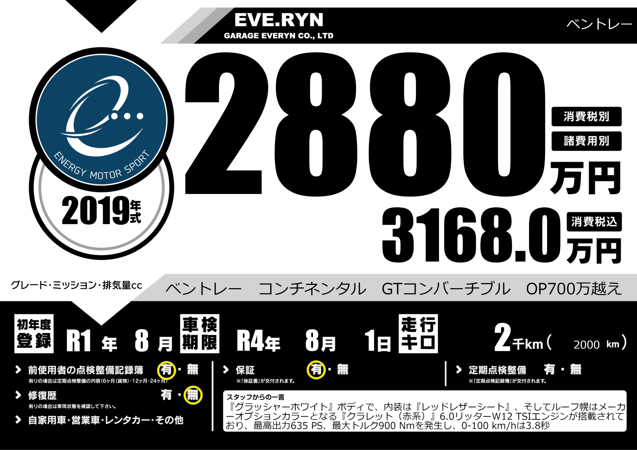 | 車名 | ベントレー | グレード ミッション 排気量 |