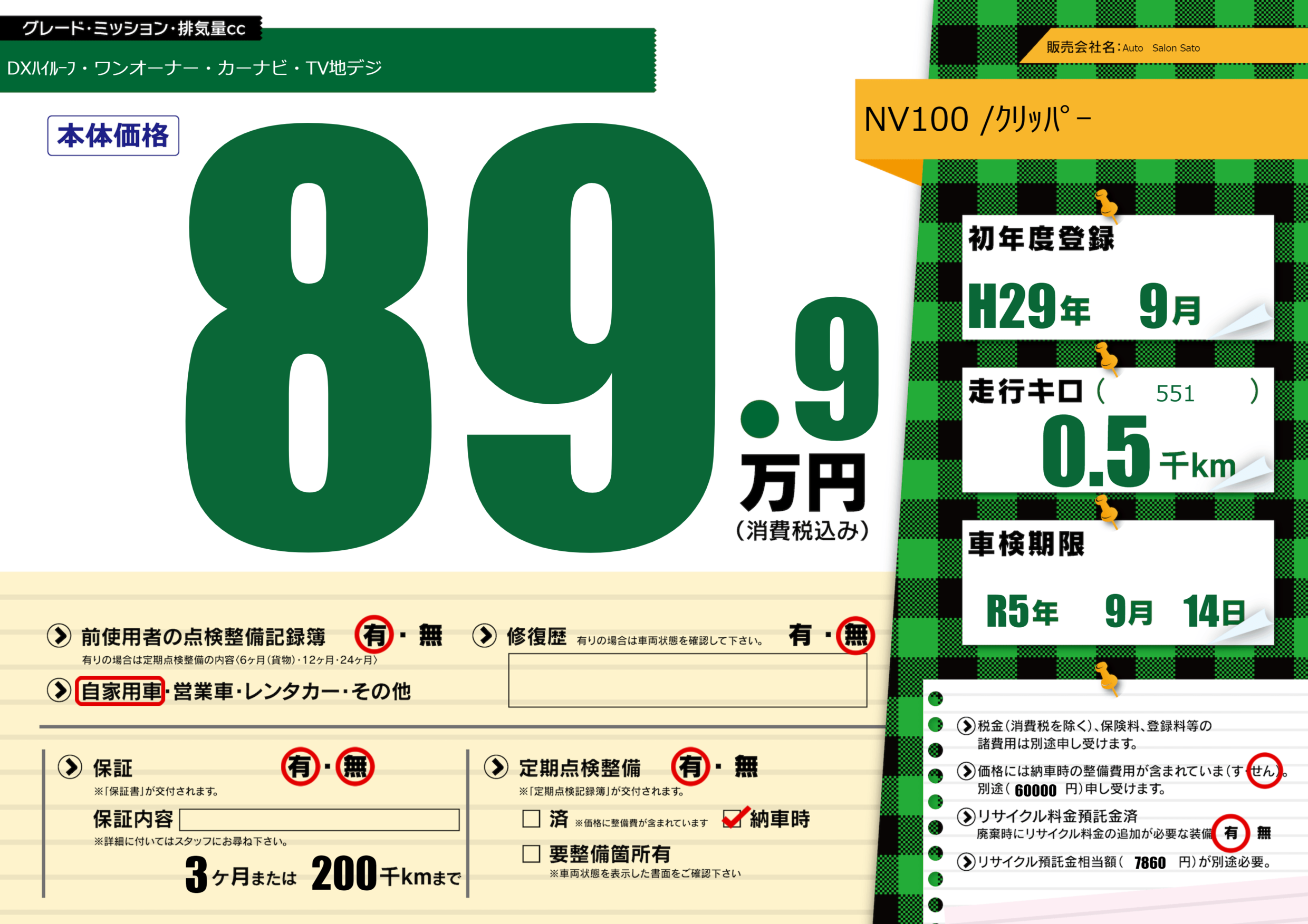 | 定期点検整備 | 定期点検整備あり 納車時あり | ||