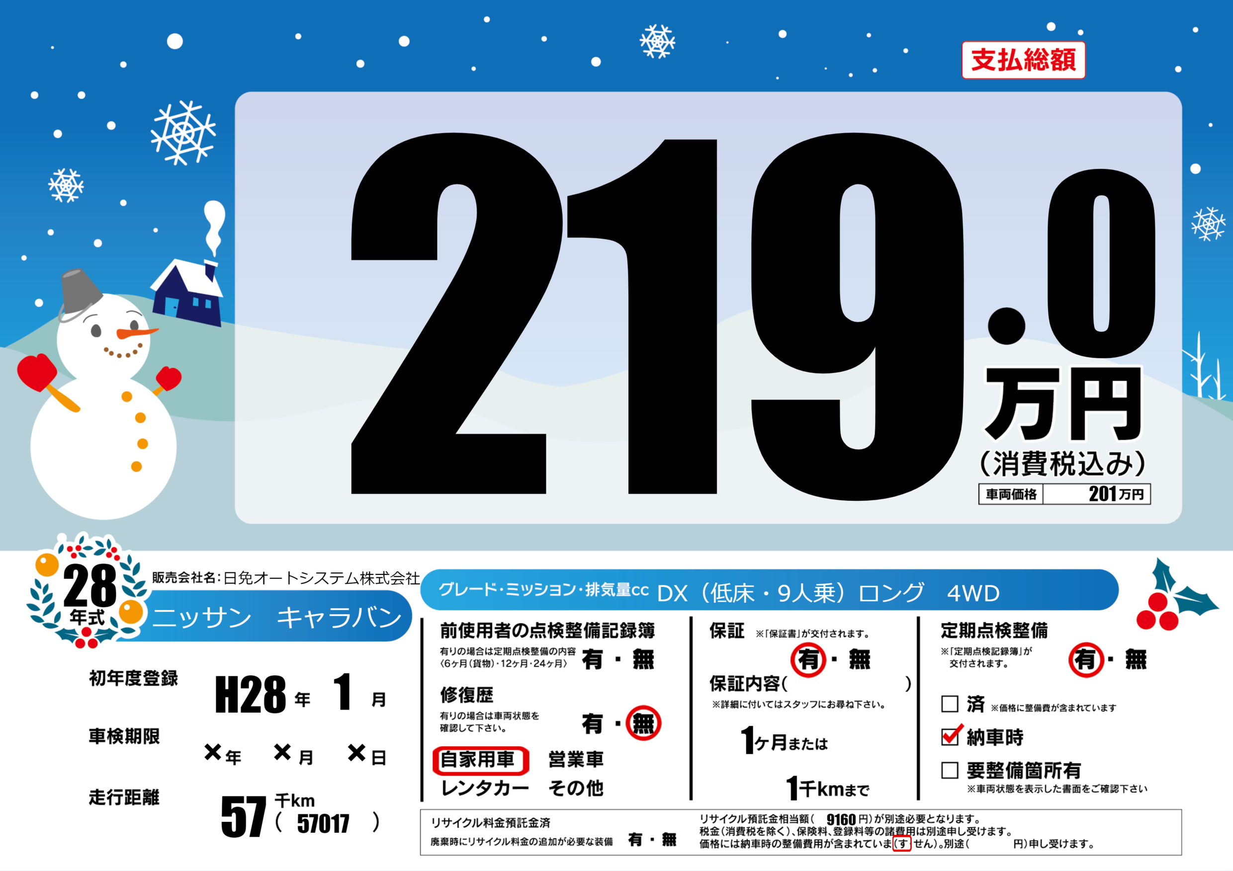 | 定期点検整備 | 定期点検整備あり 納車時あり | ||