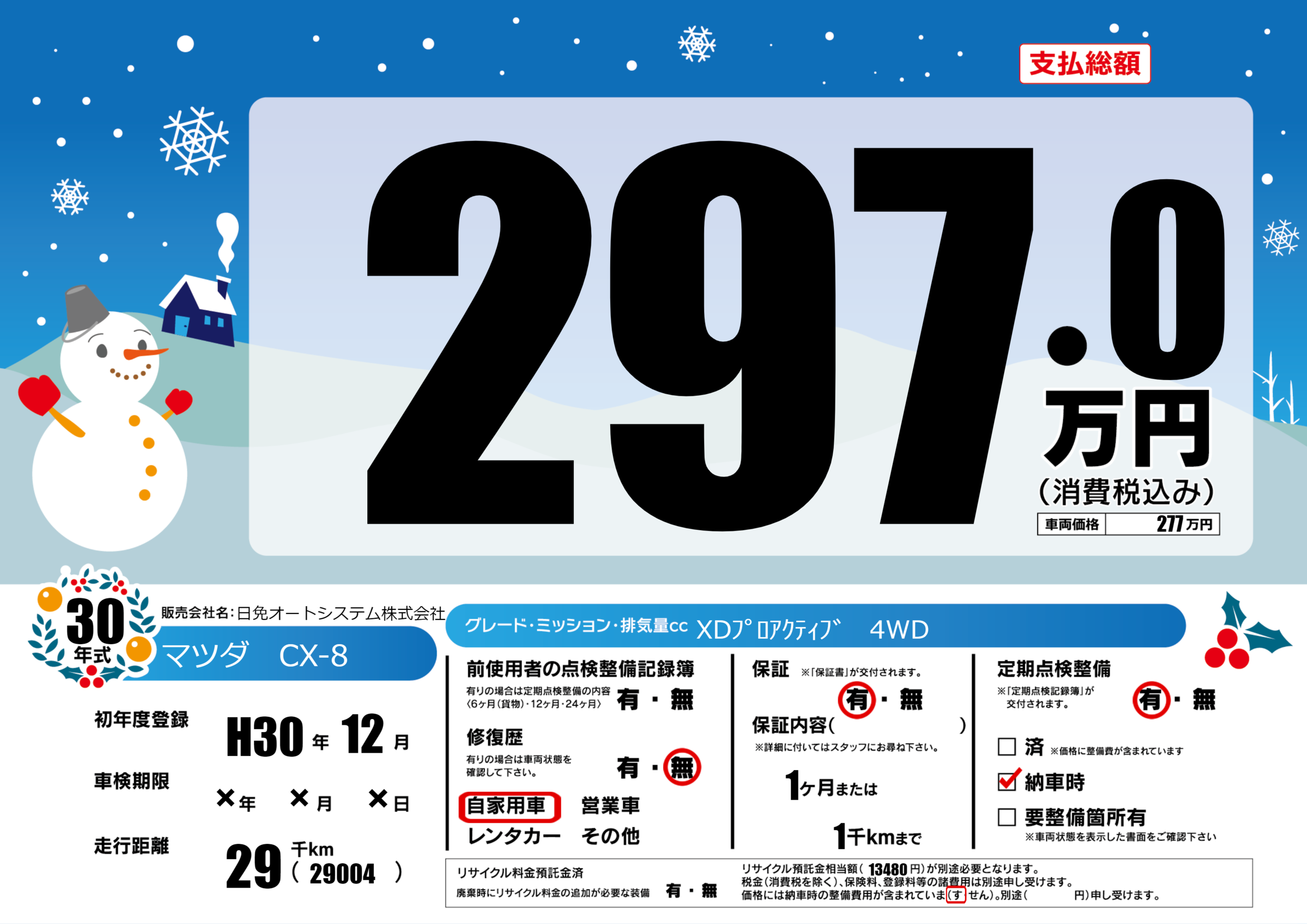 | 車名 | マツダ CX-8 | グレード ミッション 排気量 |
