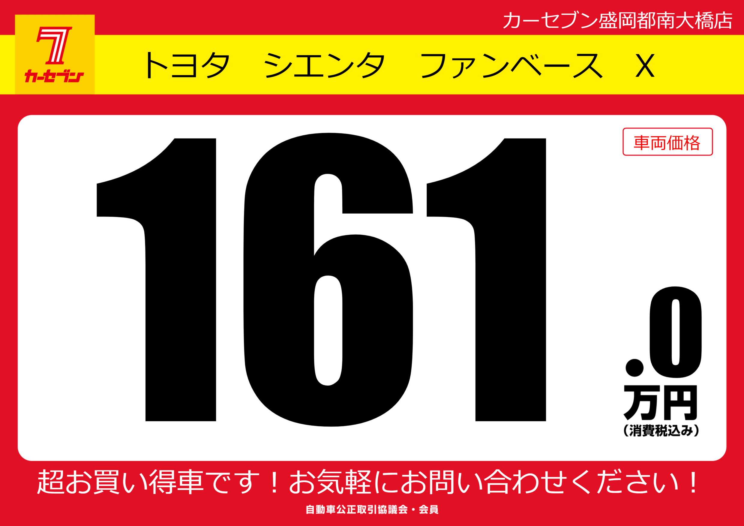 | 車名 | トヨタ シエンタ ファンベース X | グレード ミッション 排気量 |