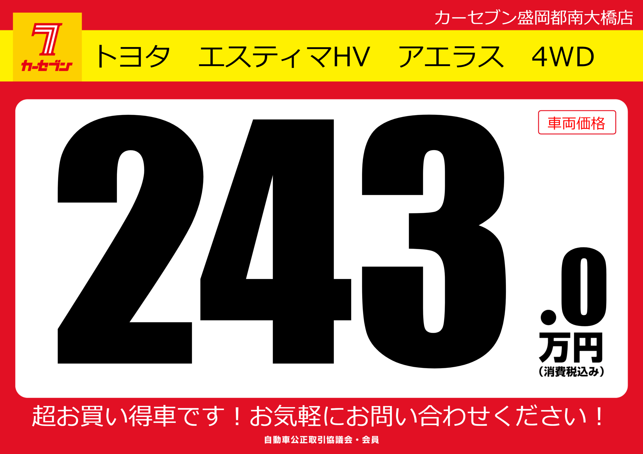 | 車名 | トヨタ エスティマHV アエラス 4WD | グレード ミッション 排気量 |