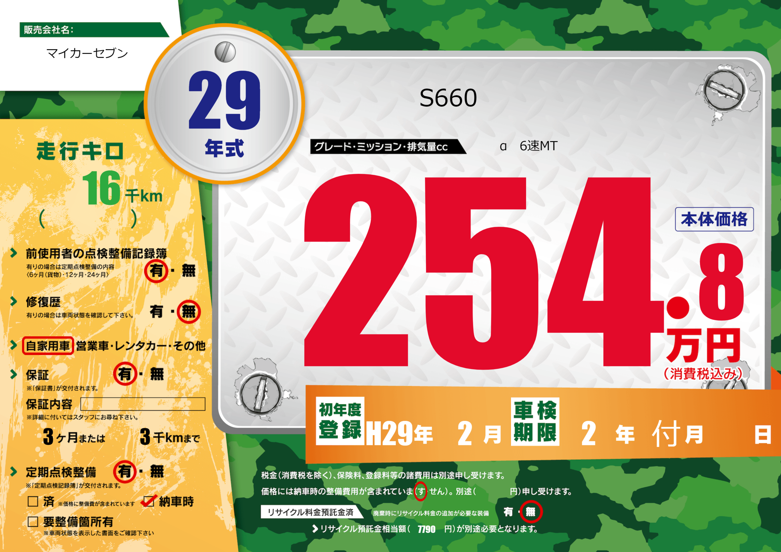 | 定期点検整備 | 定期点検整備あり 納車時あり | ||