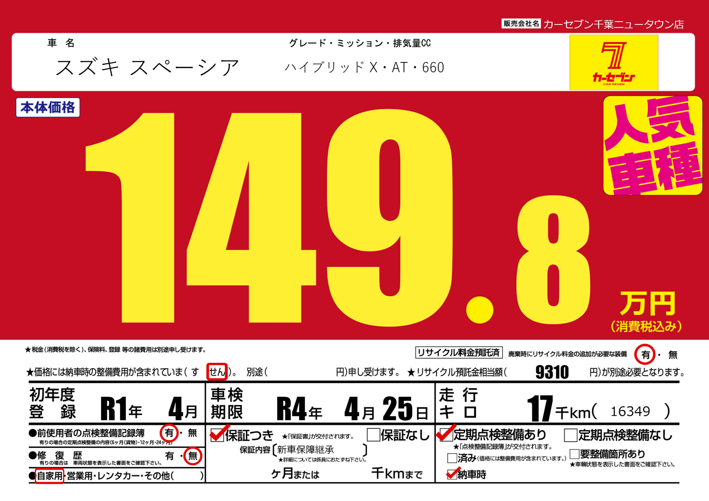 なし | 車検制限 | R4年4月25月 |
