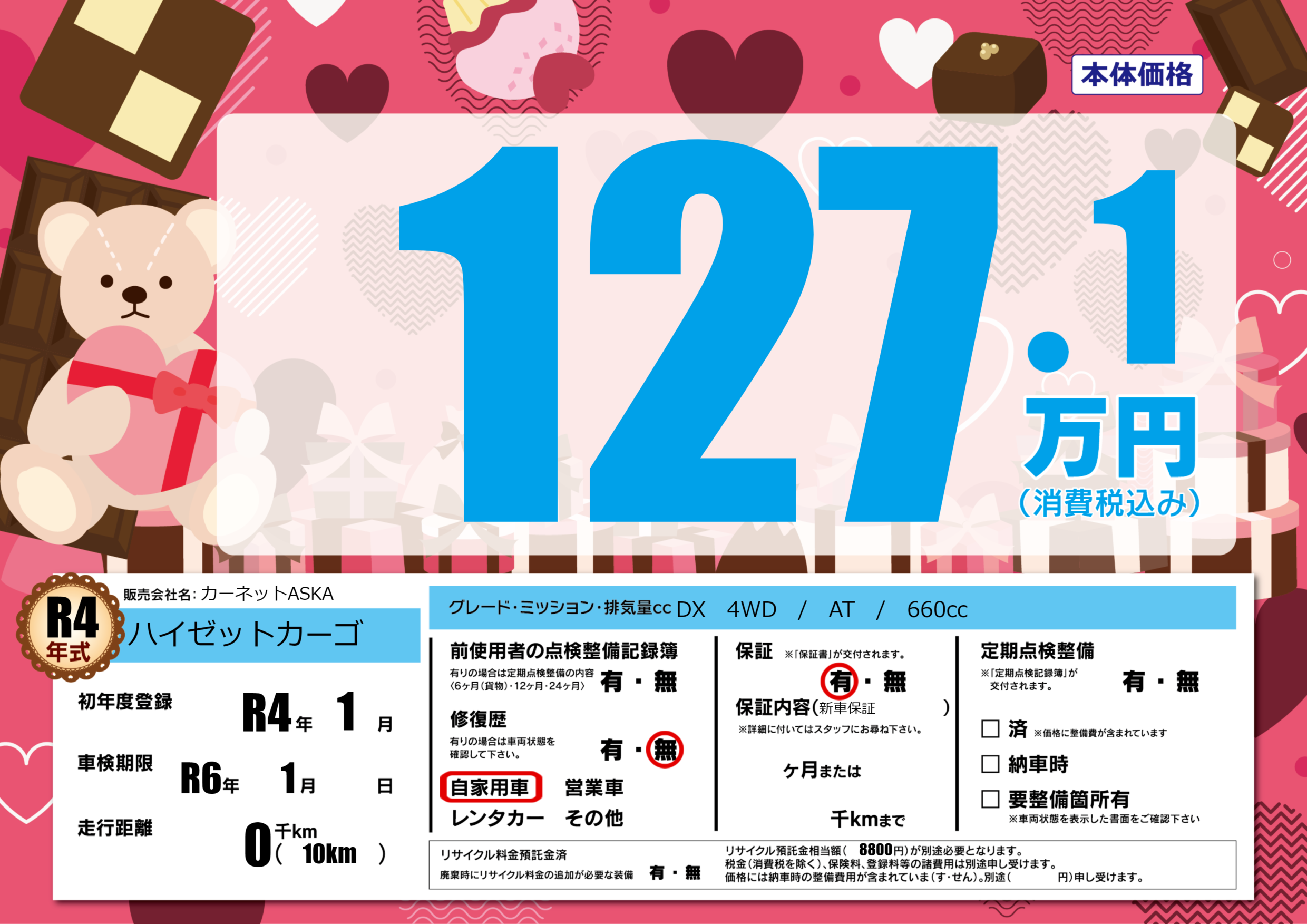 | 車名 | ハイゼットカーゴ | グレード ミッション 排気量 |
