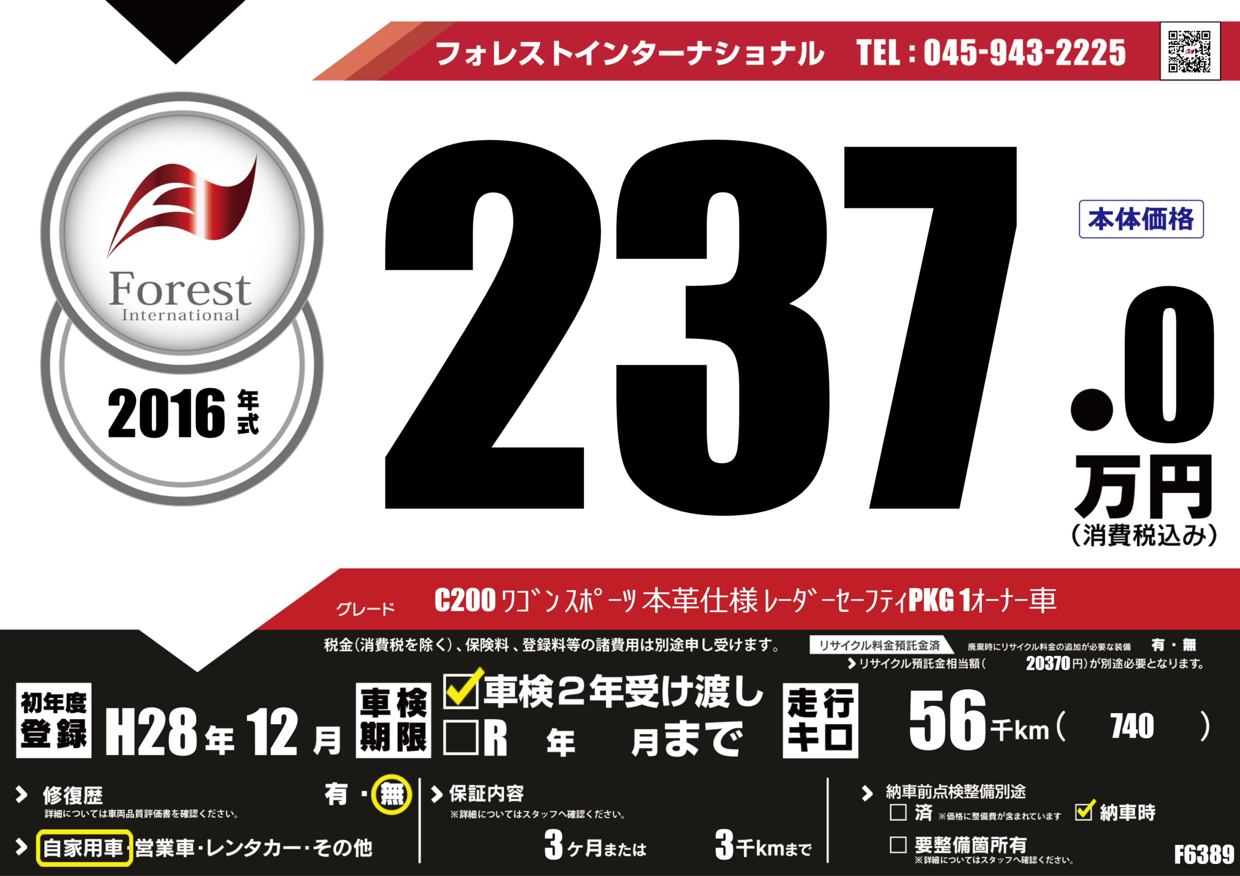 | 走行キロ | 5.6万km | 初年度登録 | H28年12月 |