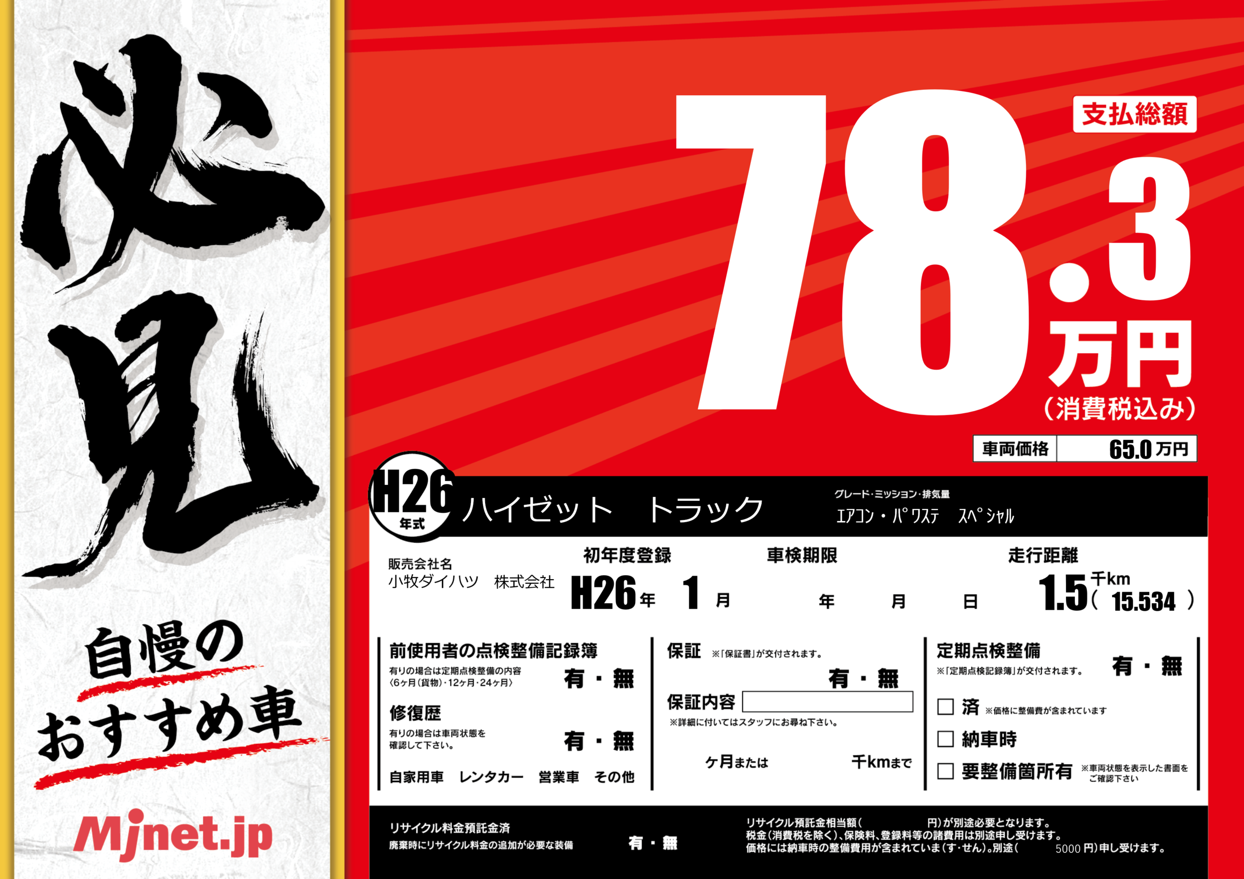 | 車名 | ハイゼット トラック | グレード ミッション 排気量 |