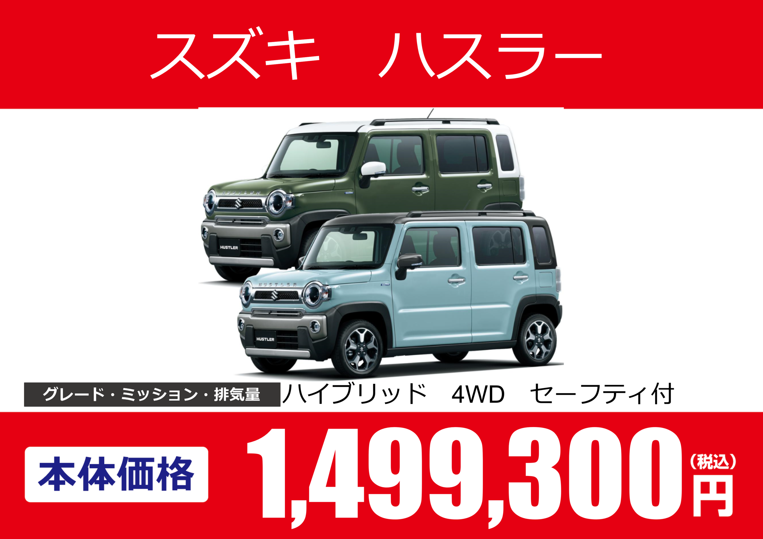 | 車名 | スズキ ハスラー | グレード ミッション 排気量 |