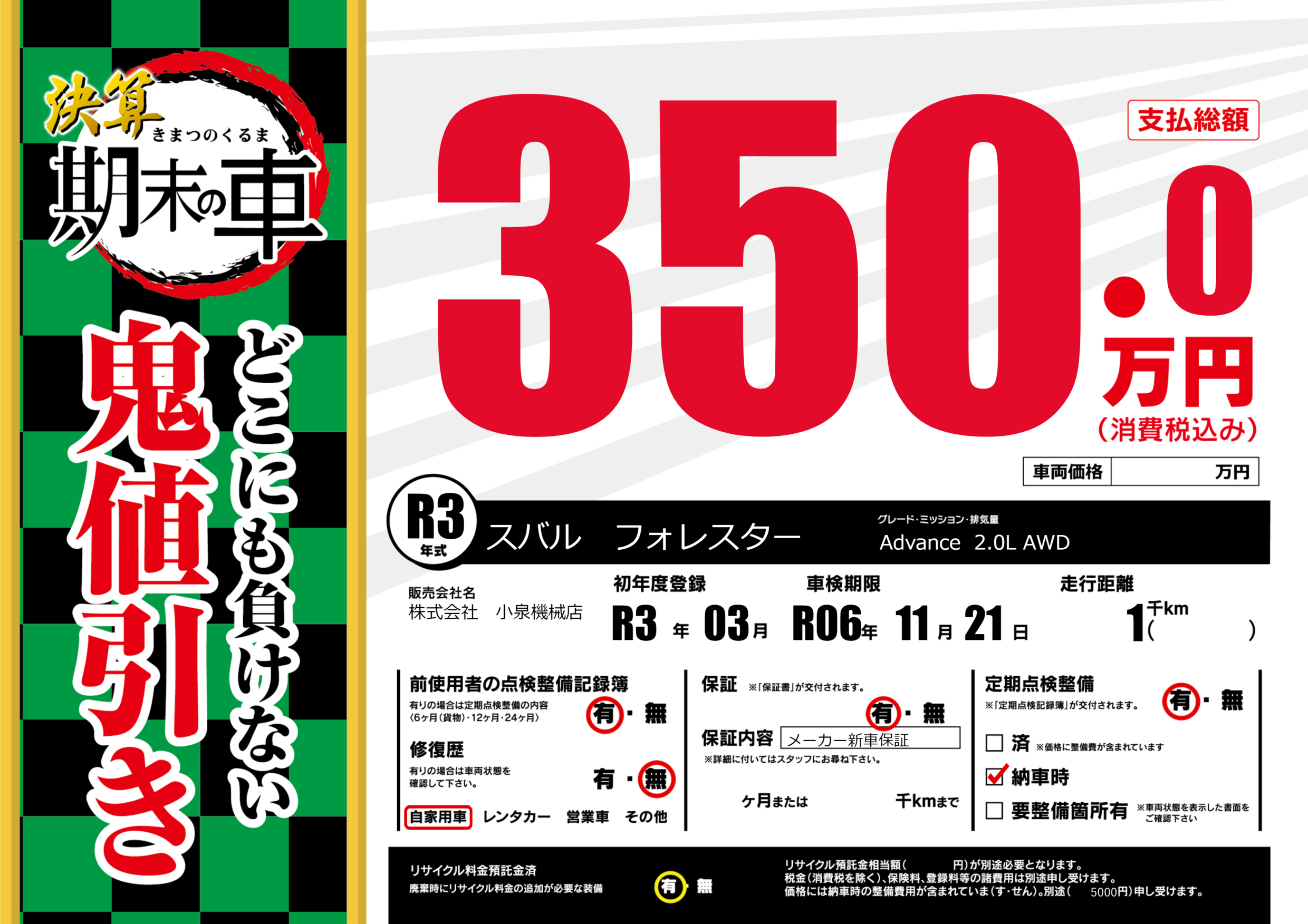 | 定期点検整備 | 定期点検整備あり 納車時あり | ||