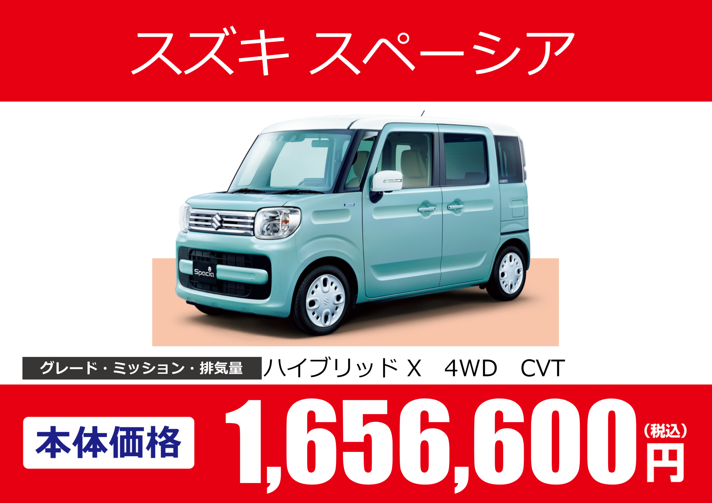 | 車名 | スズキ スペーシア | グレード ミッション 排気量 |