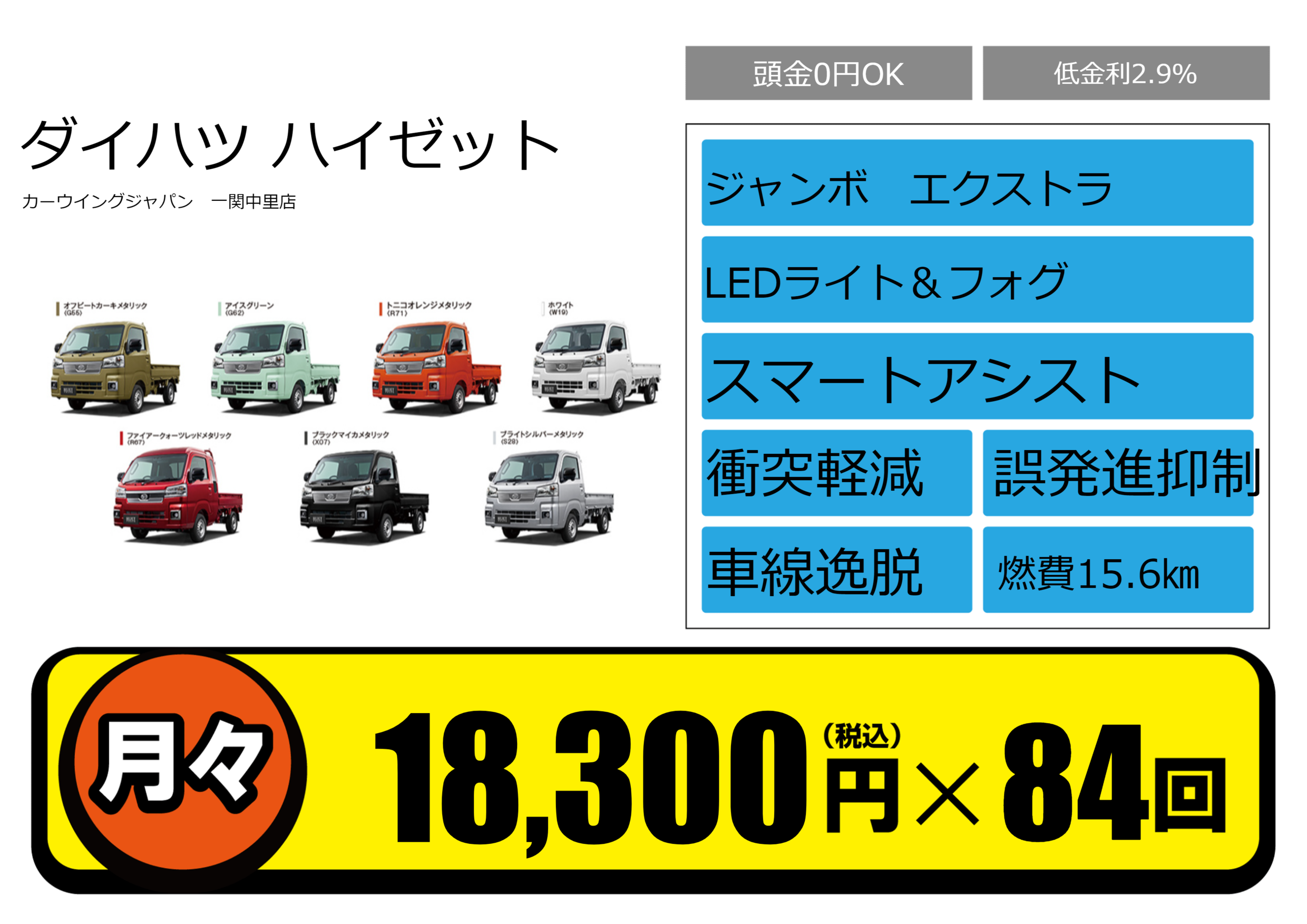 | 車名 | ダイハツ ハイゼット | グレード ミッション 排気量 |