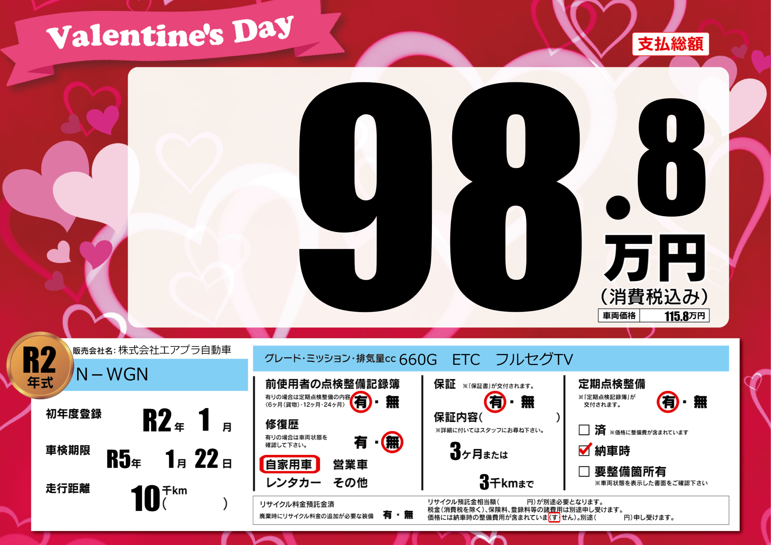 | 走行キロ | 1万km | 初年度登録 | R2年1月 |