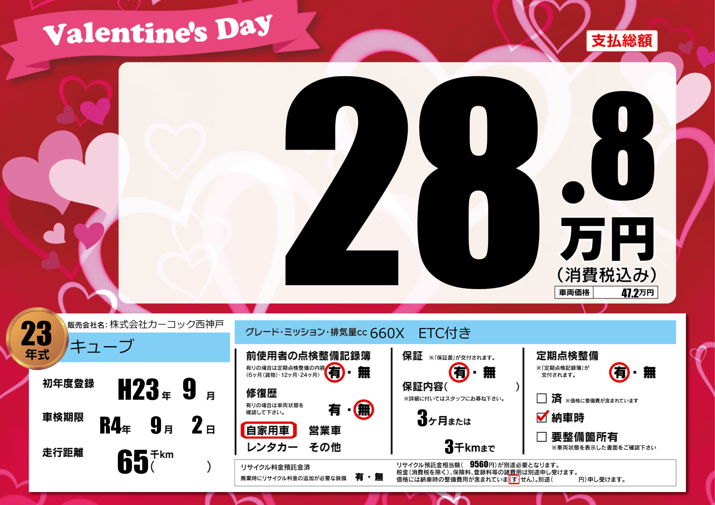 | 走行キロ | 6.5万km | 初年度登録 | H23年9月 |