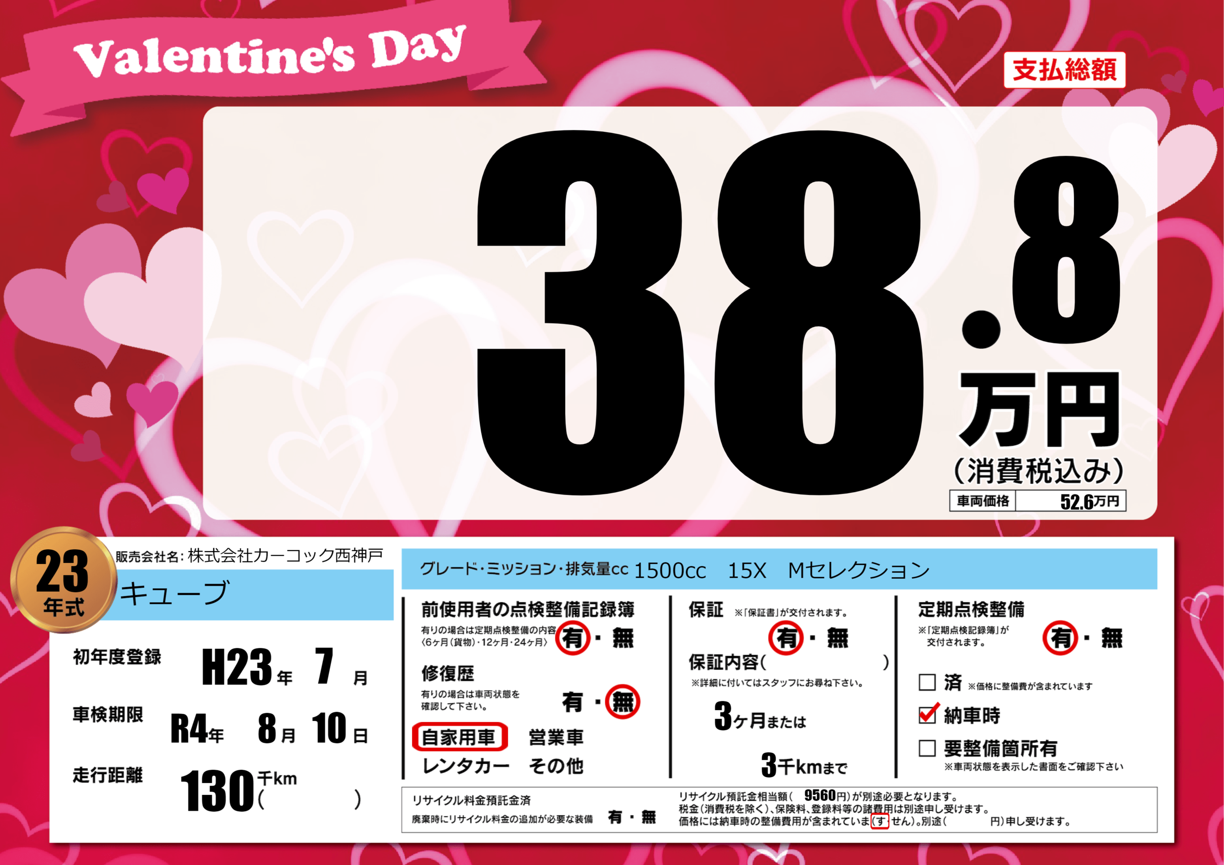 | 車名 | キューブ | グレード ミッション 排気量 |