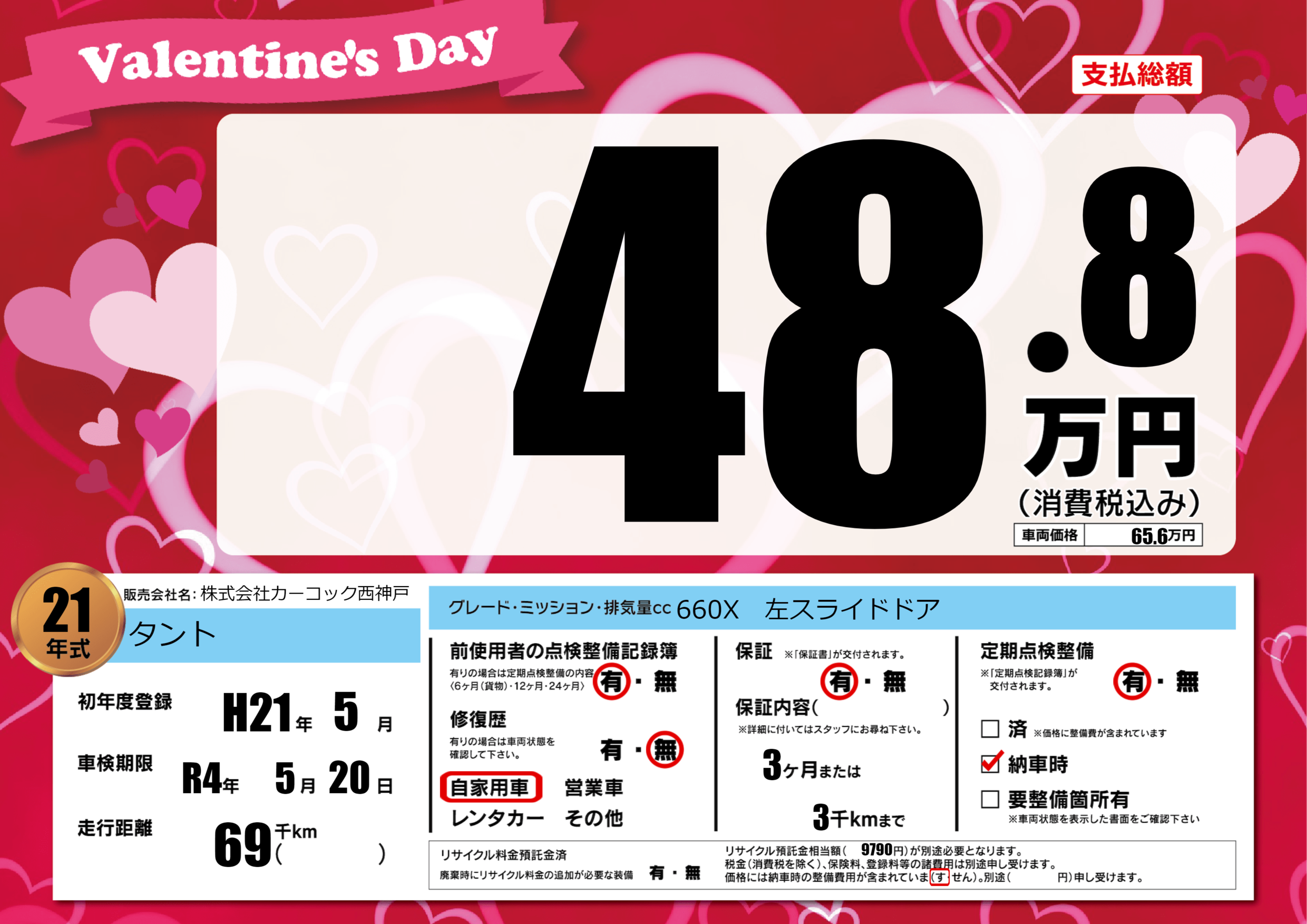 | 走行キロ | 6.9万km | 初年度登録 | H21年5月 |